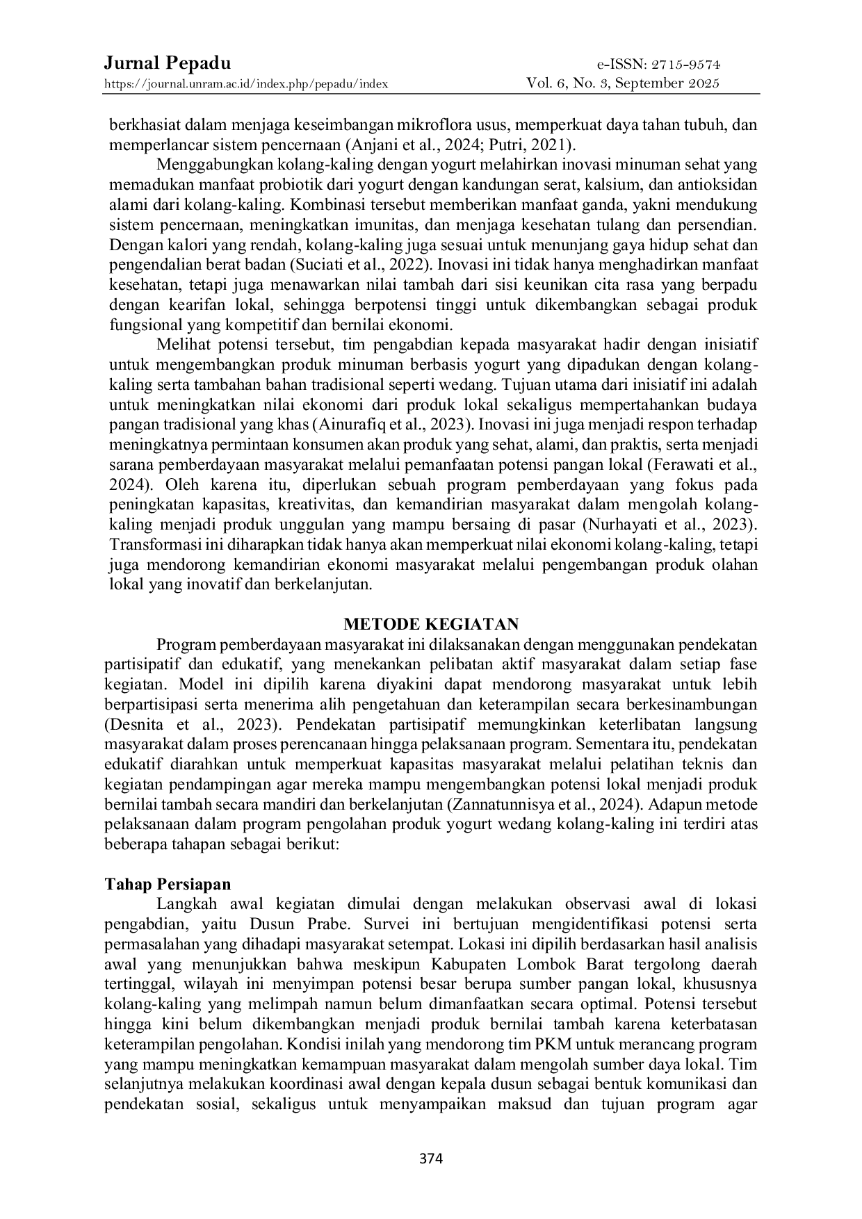 UNRAMUNRAM Program Pengabdian kepada Masyarakat (PKM) ini bertujuan untuk memberdayakan masyarakat Dusun Prabe, Desa Batu Mekar, Kabupaten Lombok Barat melalui pemanfaatanProgram Pengabdian kepada Masyarakat (PKM) ini bertujuan untuk memberdayakan masyarakat Dusun Prabe, Desa Batu Mekar, Kabupaten Lombok Barat melalui pemanfaatan