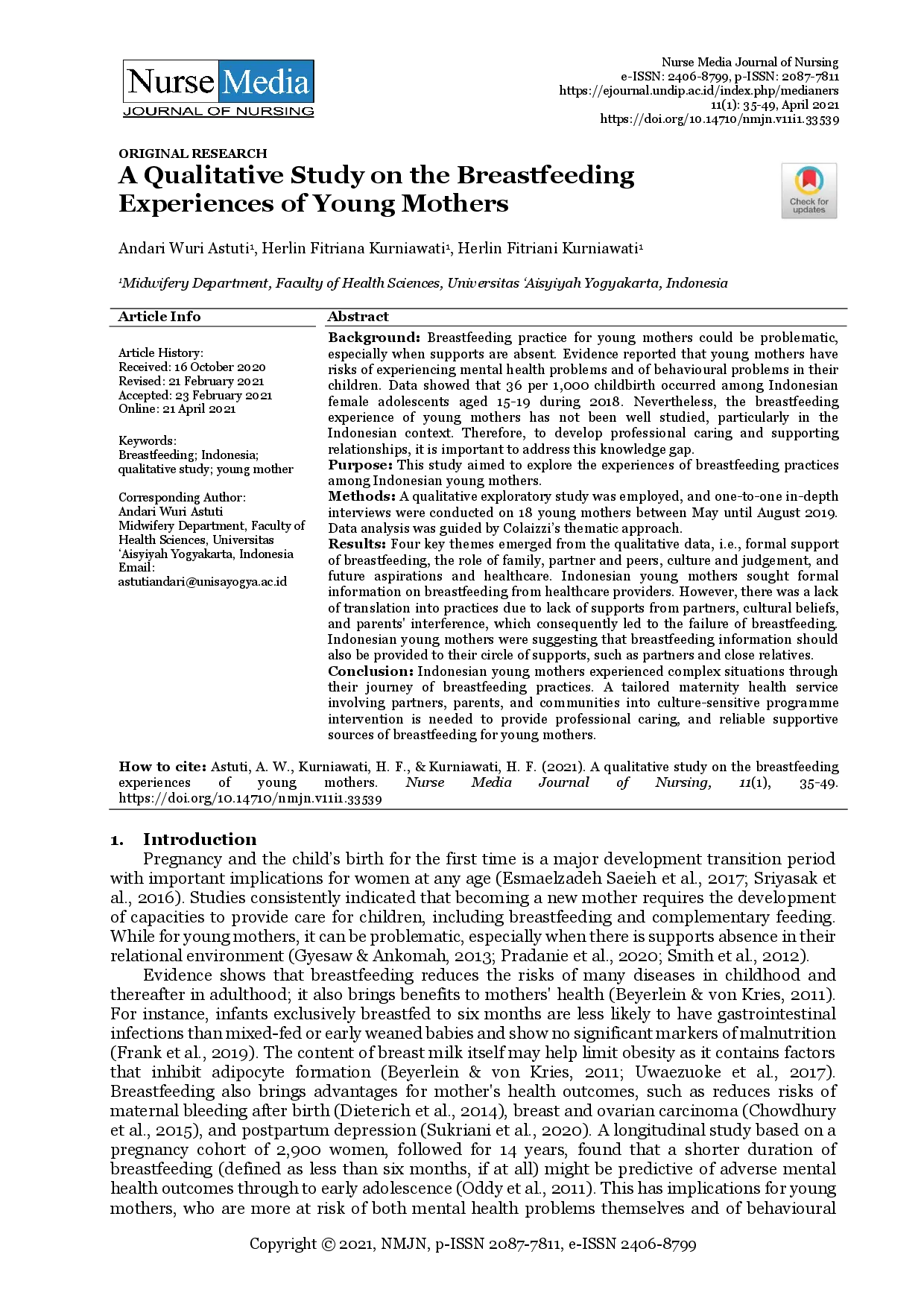 UNDIPUNDIP Kesimpulan: Ibu muda Indonesia mengalami situasi kompleks dalam perjalanan praktik menyusui. Layanan kesehatan bersalin yang disesuaikan melibatkan pasangan,Kesimpulan: Ibu muda Indonesia mengalami situasi kompleks dalam perjalanan praktik menyusui. Layanan kesehatan bersalin yang disesuaikan melibatkan pasangan,