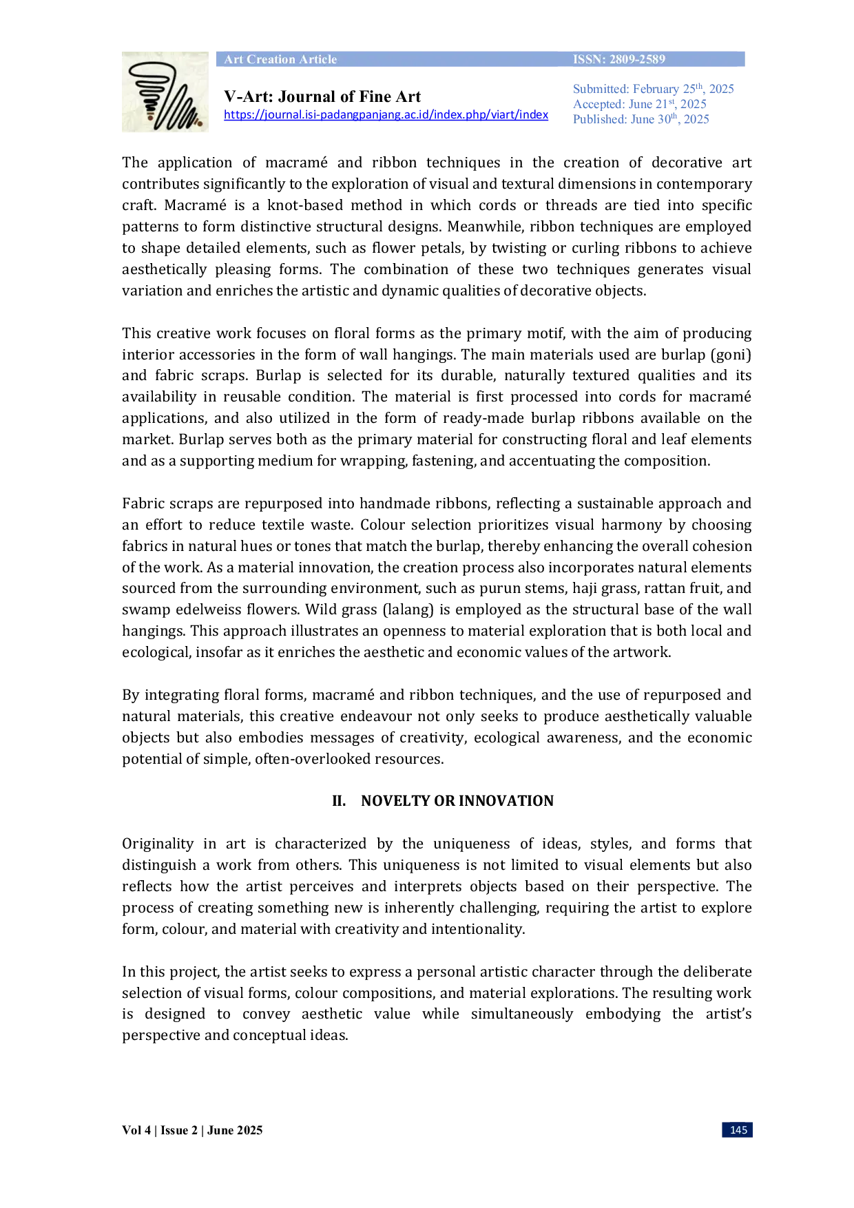 ISI PADANGPANJANGISI PADANGPANJANG Proyek ini menghasilkan tujuh karya macramé dengan berbagai ukuran dan bentuk, masing-masing dikembangkan dengan judul berbeda: Sun 1, Sun 2, Sun 3, SunProyek ini menghasilkan tujuh karya macramé dengan berbagai ukuran dan bentuk, masing-masing dikembangkan dengan judul berbeda: Sun 1, Sun 2, Sun 3, Sun