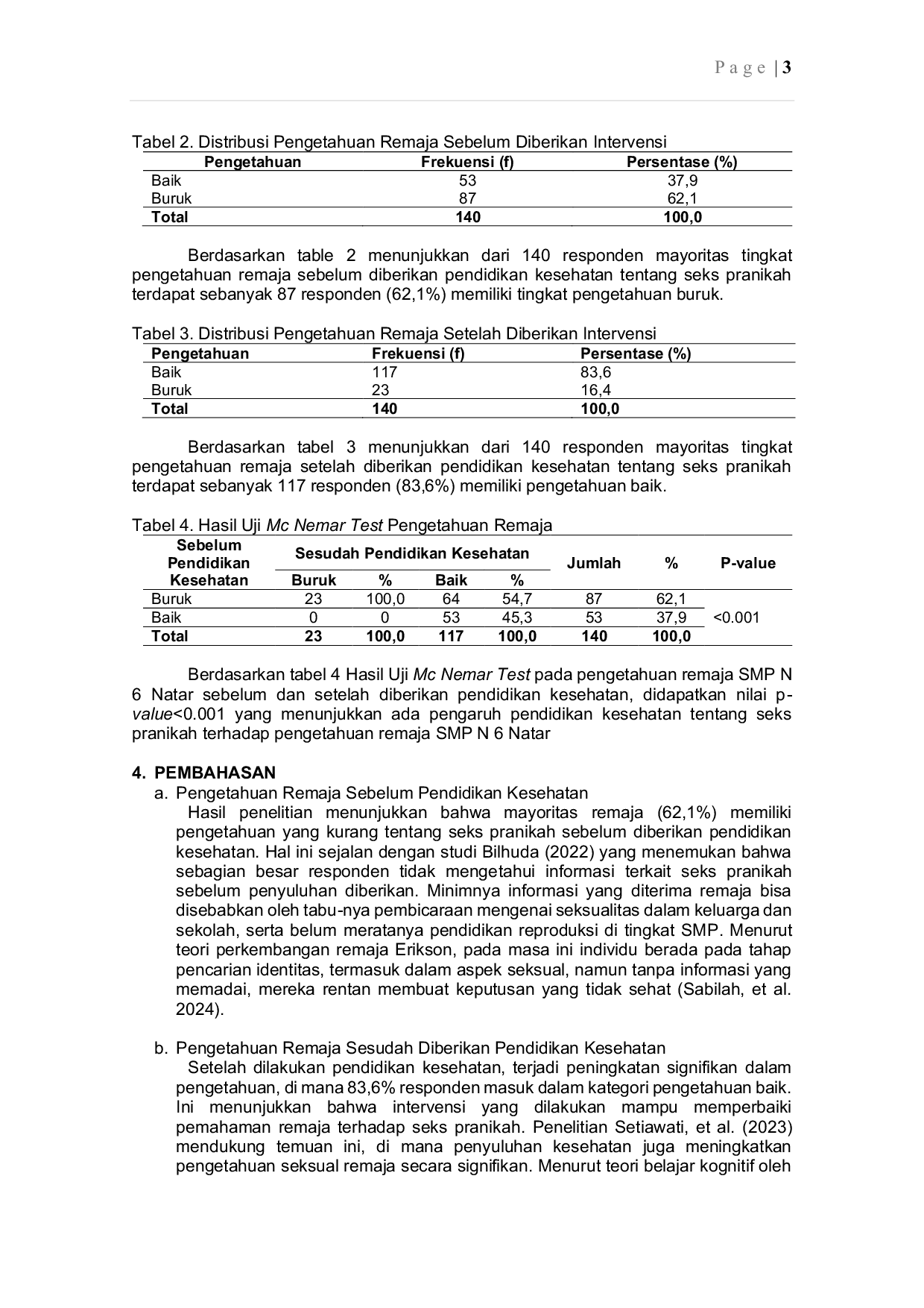 POLTEKKES JOGJAPOLTEKKES JOGJA Sampel terdiri dari 140 siswi kelas VII dan VIII yang dipilih menggunakan cluster random sampling. Data dikumpulkan melalui kuesioner dan dianalisis menggunakanSampel terdiri dari 140 siswi kelas VII dan VIII yang dipilih menggunakan cluster random sampling. Data dikumpulkan melalui kuesioner dan dianalisis menggunakan