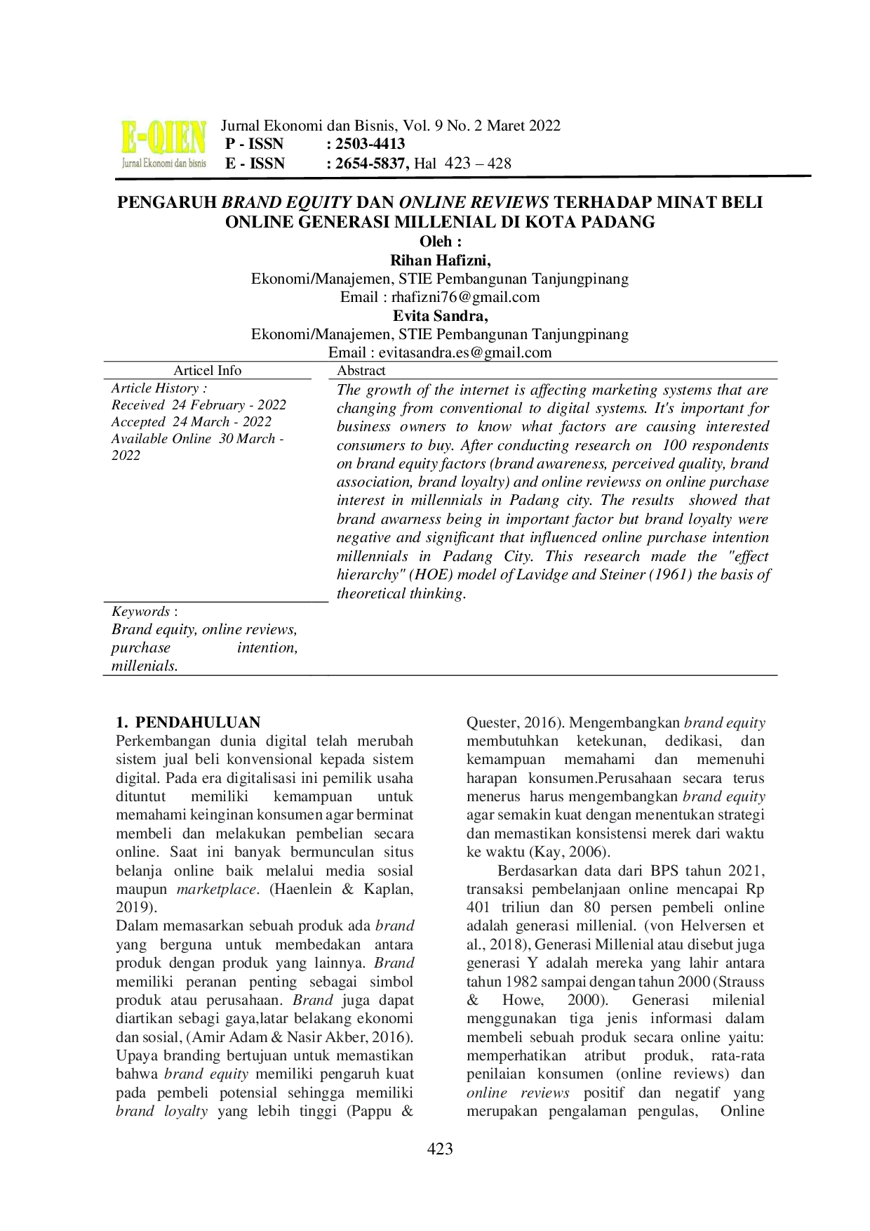 STIE MUTTAQIENSTIE MUTTAQIEN Temuan ini mendukung model hierarki efek (HOE) yang menyatakan bahwa persepsi konsumen dan proses komunikasi memengaruhi keputusan pembelian. Brand awarenessTemuan ini mendukung model hierarki efek (HOE) yang menyatakan bahwa persepsi konsumen dan proses komunikasi memengaruhi keputusan pembelian. Brand awareness