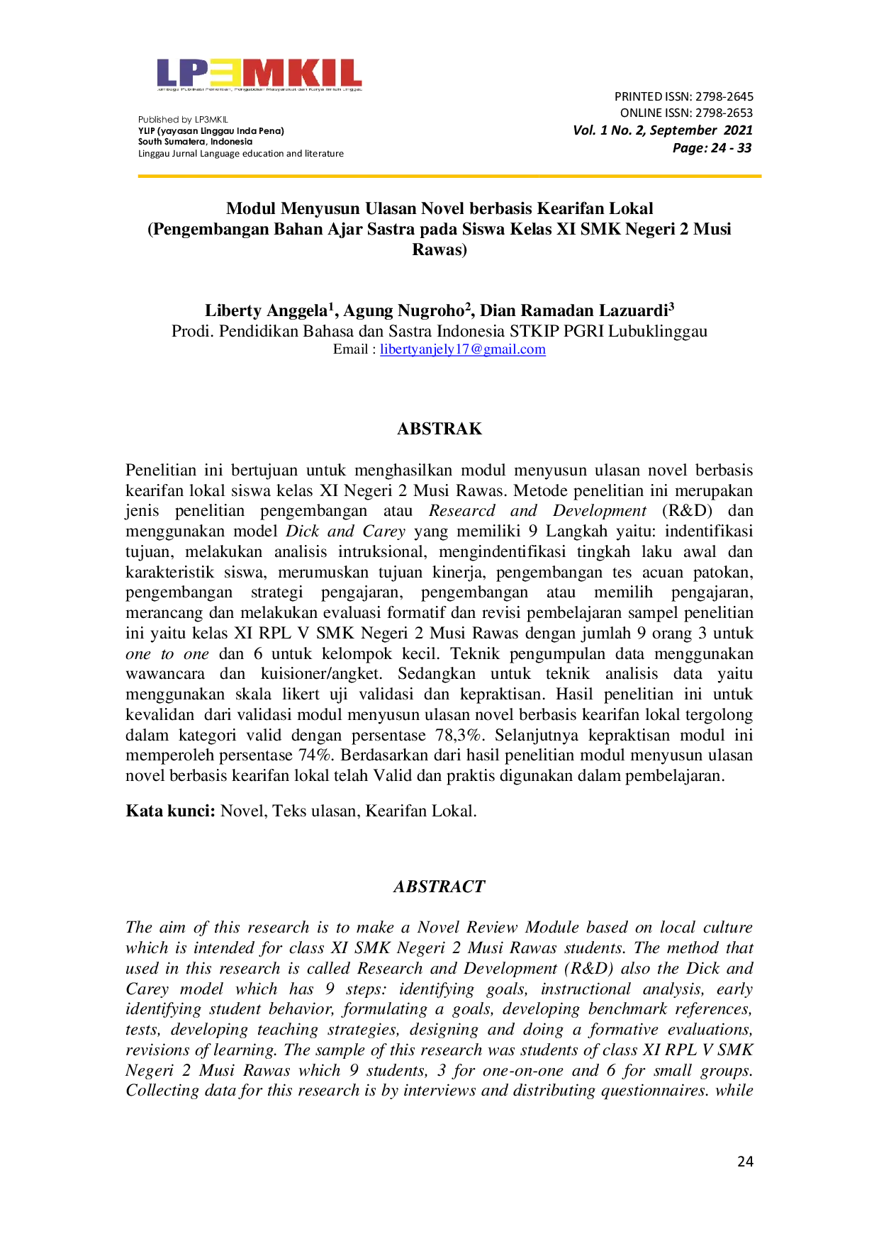 LP3MKILLP3MKIL Berdasarkan hasil penelitian, modul menyusun ulasan novel berbasis kearifan lokal telah terbukti valid dan praktis untuk digunakan dalam pembelajaran.Berdasarkan hasil penelitian, modul menyusun ulasan novel berbasis kearifan lokal telah terbukti valid dan praktis untuk digunakan dalam pembelajaran.