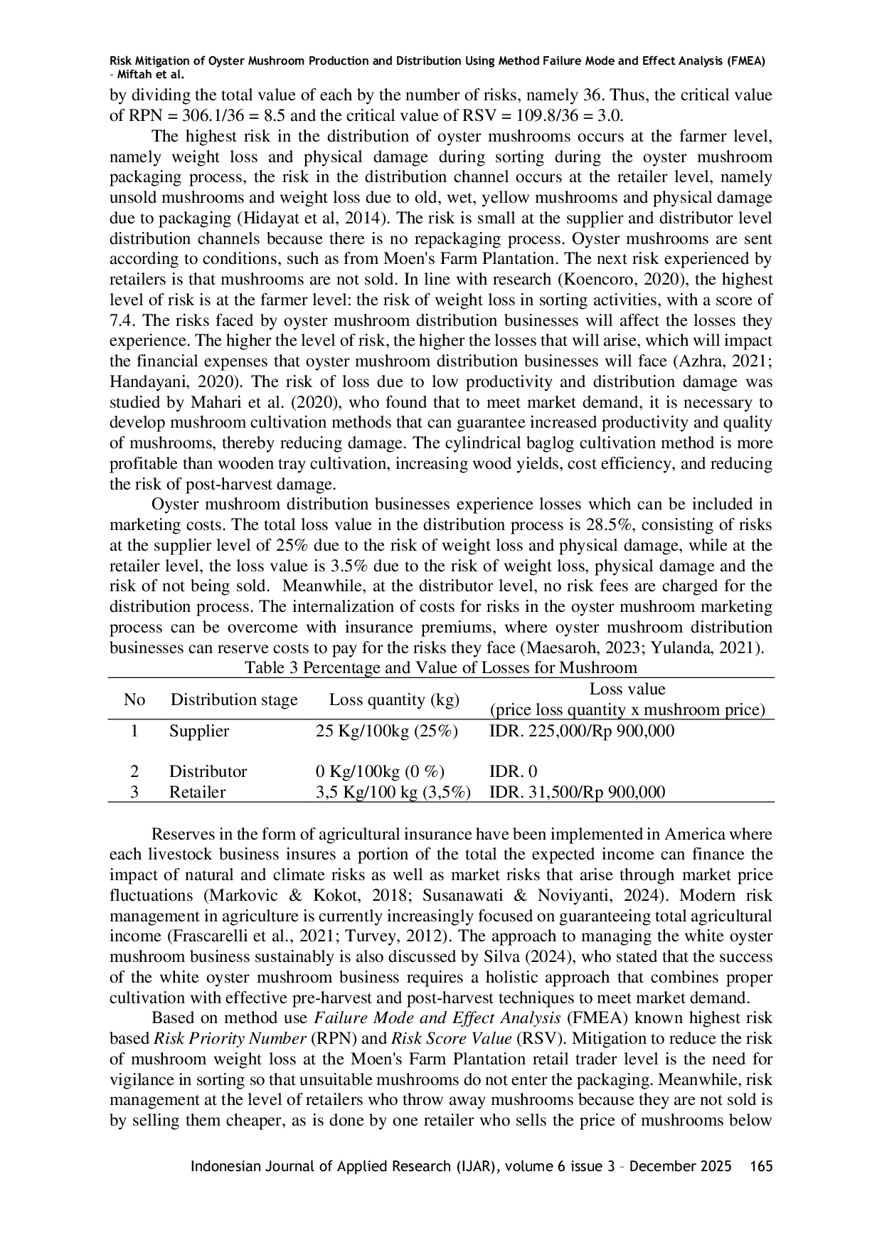 UNIDAUNIDA This research aims to analyse and measure risks in the production and distribution of oyster mushrooms and determine actions to mitigate risks. The researchThis research aims to analyse and measure risks in the production and distribution of oyster mushrooms and determine actions to mitigate risks. The research