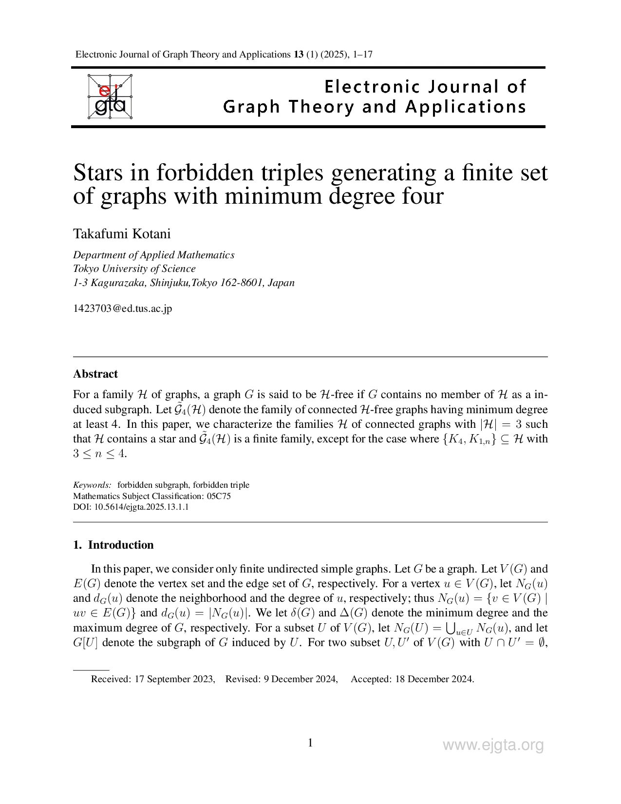 EJGTAEJGTA 2 menghasilkan keluarga graf terbatas, sementara kombinasi lainnya dapat menghasilkan keluarga tidak terbatas. Oleh karena itu, karakterisasi ini memberi2 menghasilkan keluarga graf terbatas, sementara kombinasi lainnya dapat menghasilkan keluarga tidak terbatas. Oleh karena itu, karakterisasi ini memberi