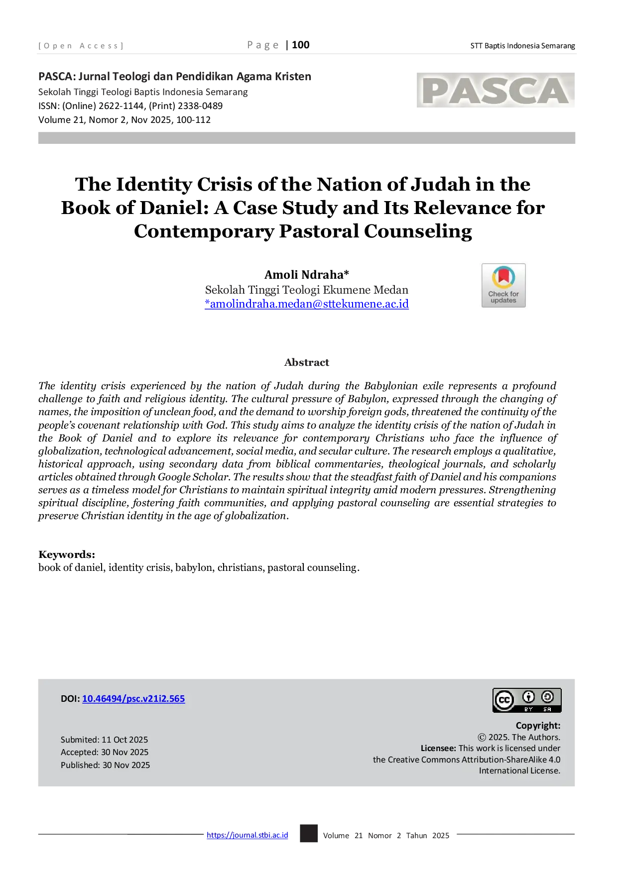 STBISTBI Tekanan budaya Babel yang diwujudkan melalui perubahan nama, pemberian makanan najis, dan pemaksaan untuk menyembah allah asing menjadi ancaman bagi keberlangsunganTekanan budaya Babel yang diwujudkan melalui perubahan nama, pemberian makanan najis, dan pemaksaan untuk menyembah allah asing menjadi ancaman bagi keberlangsungan