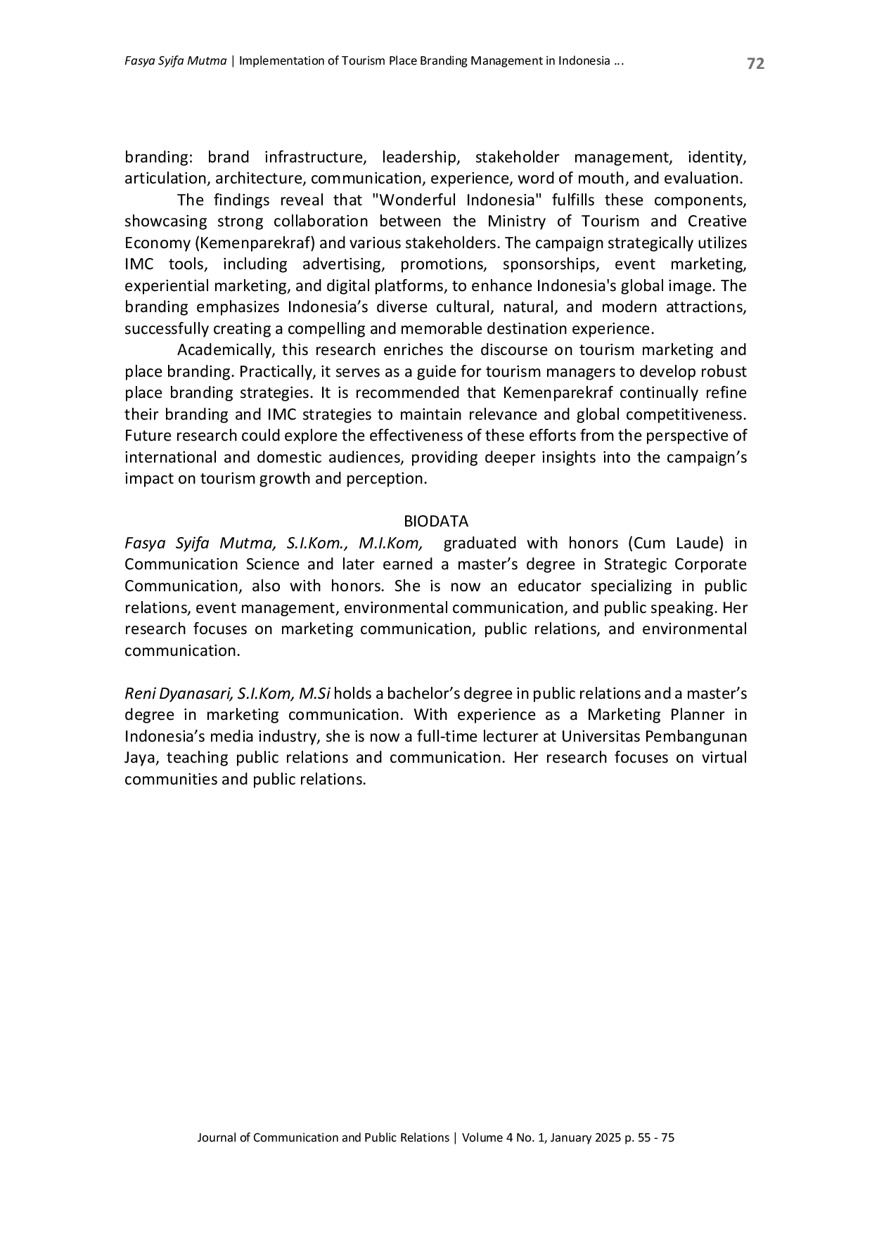 LSPRLSPR Terdapat konsep yang disebut place branding, di mana “Wonderful Indonesia diterapkan untuk menandai pariwisata Indonesia. Penelitian ini bertujuan untukTerdapat konsep yang disebut place branding, di mana “Wonderful Indonesia diterapkan untuk menandai pariwisata Indonesia. Penelitian ini bertujuan untuk