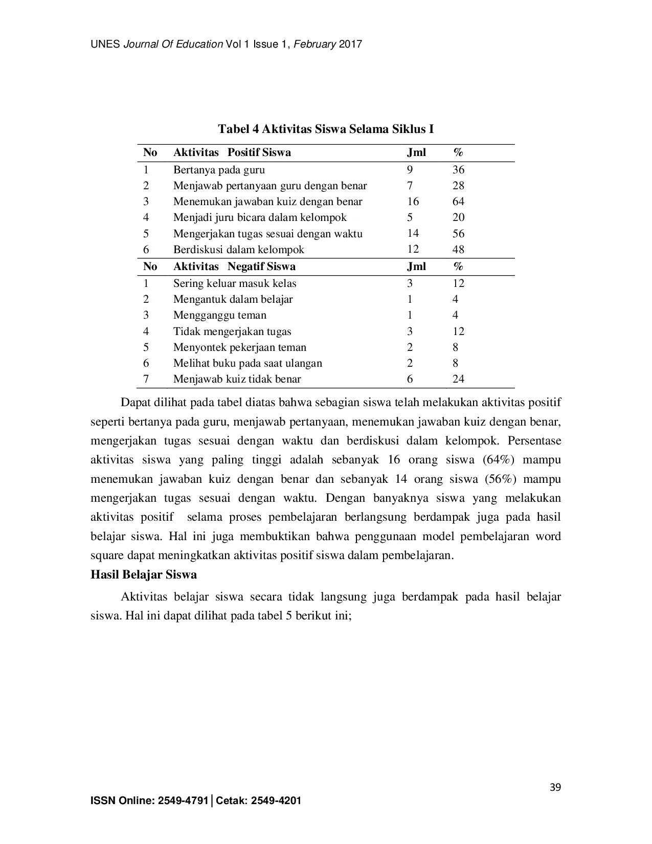 EKASAKTIEKASAKTI Berdasarkan temuan tersebut, disarankan kepada guru untuk menggunakan model Word Square secara umum dan khususnya pada pembelajaran IPA. Berdasarkan hasilBerdasarkan temuan tersebut, disarankan kepada guru untuk menggunakan model Word Square secara umum dan khususnya pada pembelajaran IPA. Berdasarkan hasil