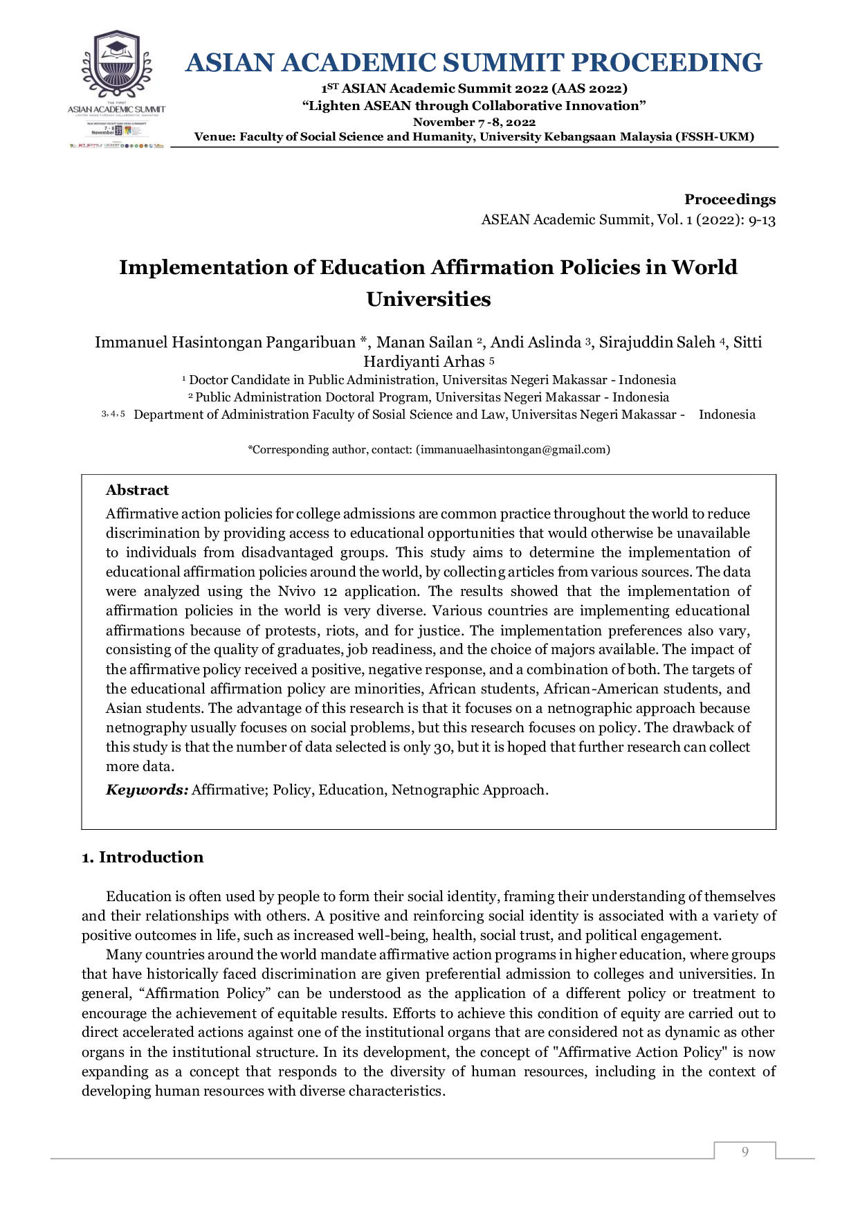 HARPRESSIDHARPRESSID Hasil menunjukkan bahwa pelaksanaan kebijakan afirmasi di dunia sangat beragam; berbagai negara menerapkan afirmasi pendidikan karena protes, kerusuhan,Hasil menunjukkan bahwa pelaksanaan kebijakan afirmasi di dunia sangat beragam; berbagai negara menerapkan afirmasi pendidikan karena protes, kerusuhan,