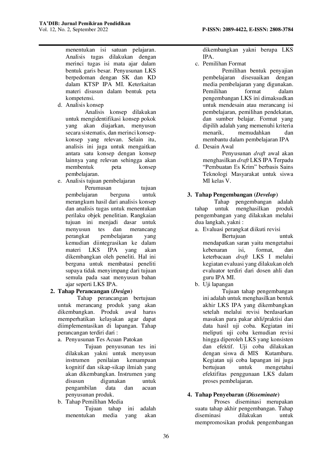 Ta'dib: Jurnal Pemikiran PendidikanTa'dib: Jurnal Pemikiran PendidikanPendekatan STM dapat digunakan untuk meningkatkan sikap ilmiah. Jurnal ini bertujuan untuk mengetahui langkah-langkah menyusun media LKS IPA berbasis Sains Teknologi Masyarakat (STM). Jurnal ini memberikan gambaran kepada pembaca untuk memahami langkah dalam menyusun penelitian pengembangan media LKS IPA berbasis Sains Teknologi Masyarakat. Instrumen yang digunakan adalah metode RnD dengan model 4D, yaitu Define, Design, Develop, dan Disseminate. Instrumen yang digunakan berupa lembar validasi dan lembar observasi keterlaksanaan STM.