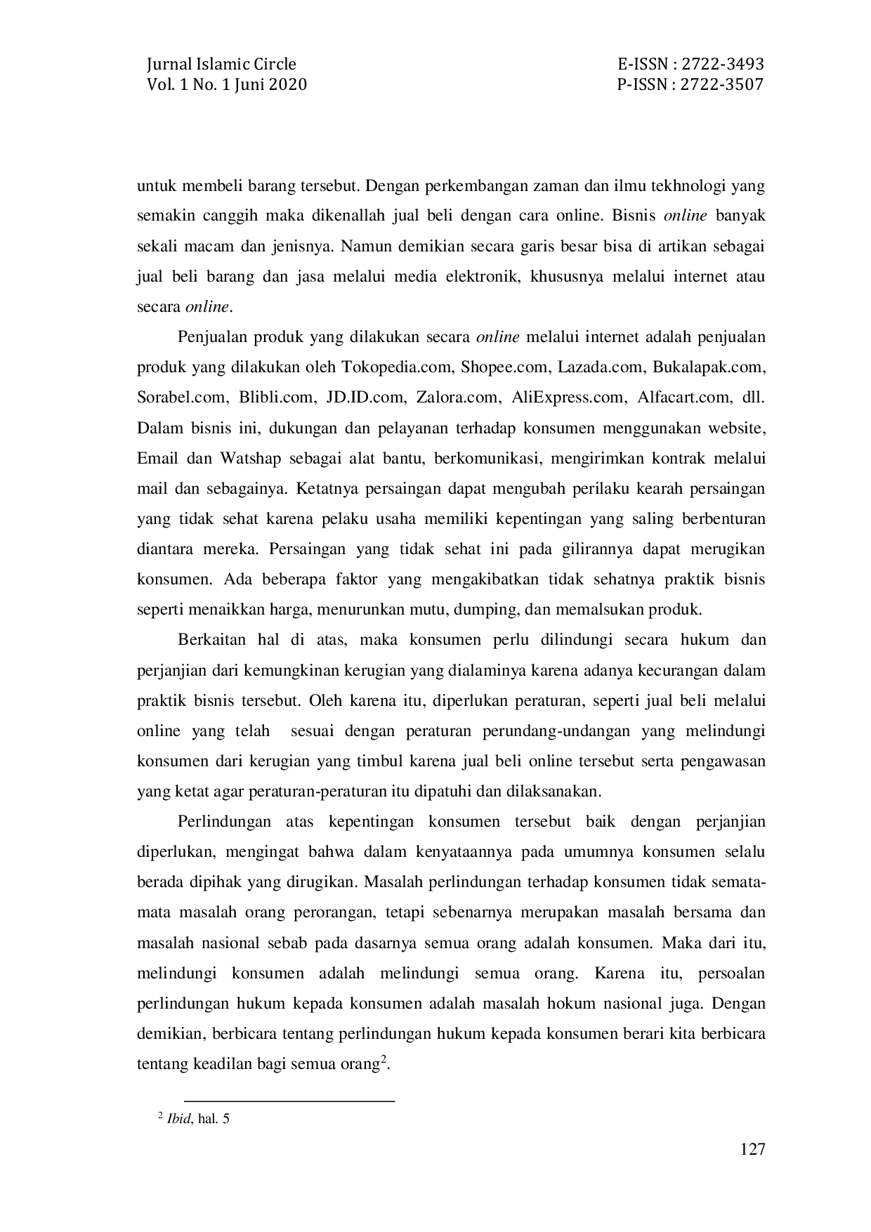 Islamic CircleIslamic CircleBentuk perjanjian jual beli telah berkembang demikian pesat sebagai usaha mencapai kebutuhan hidup manusia, kadangkala perjanjian itu tidak memenuhi ketentuan hukum yang berlaku, dan bahkan dapat terjadi ketidakseimbangan. Begitu pula dengan E-commerce yang secara umum termasuk bentuk jual beli, karena tidak bisa dipungkiri terjadi kecurangan terhadap hak orang lain bahkan kepentingan masyarakat pada umumnya.