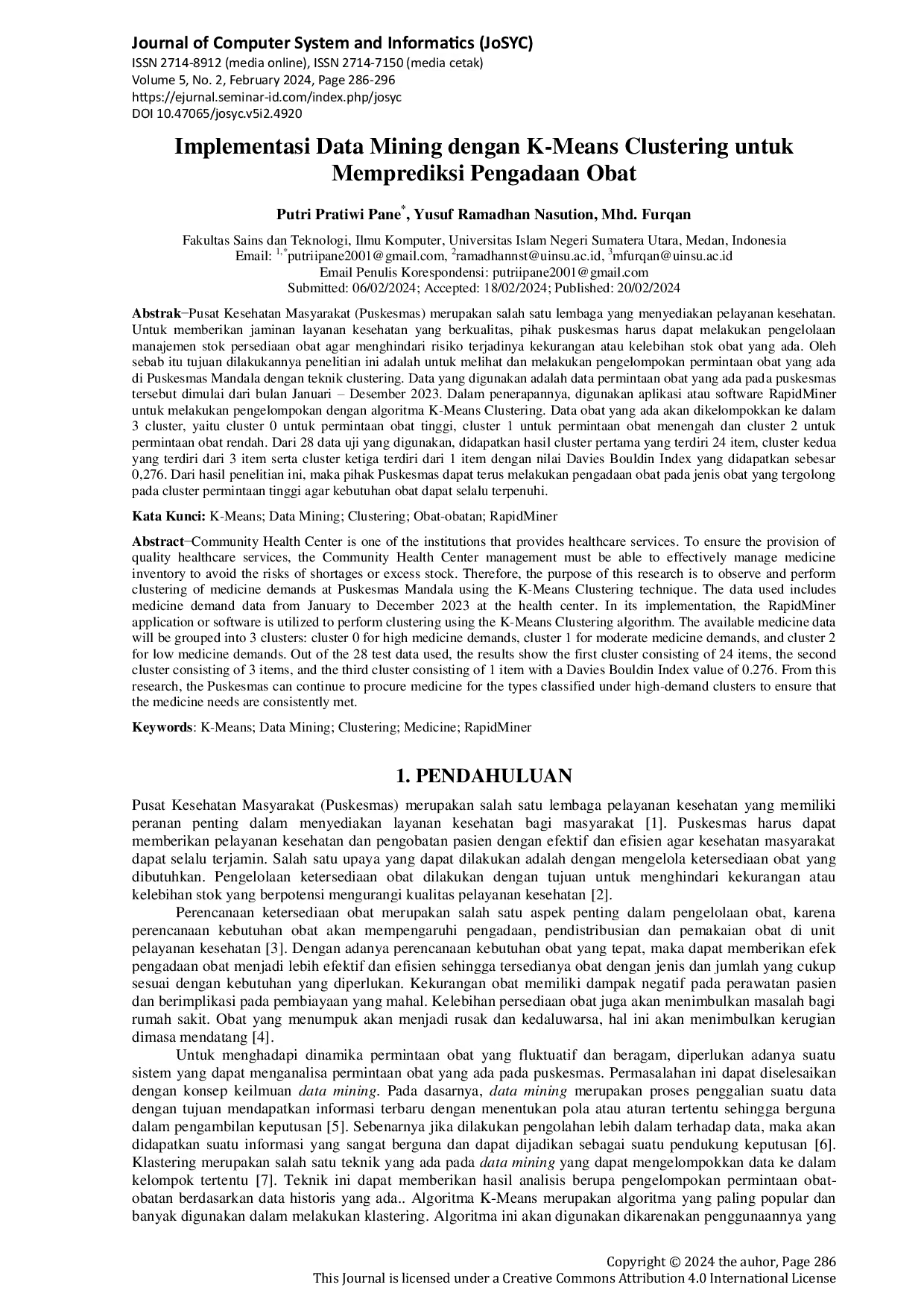 - Penerapan Metode Clustering Dengan K-Means Untuk Memetakan Potensi Tanaman Padi di Sumatera | Journal... doi.org/10.47065/josyc.v5i1.4523Penerapan Metode Clustering Dengan K Means Untuk Memetakan Potensi Tanaman Padi di Sumatera Journal doi 10 47065 josyc v5i1 4523