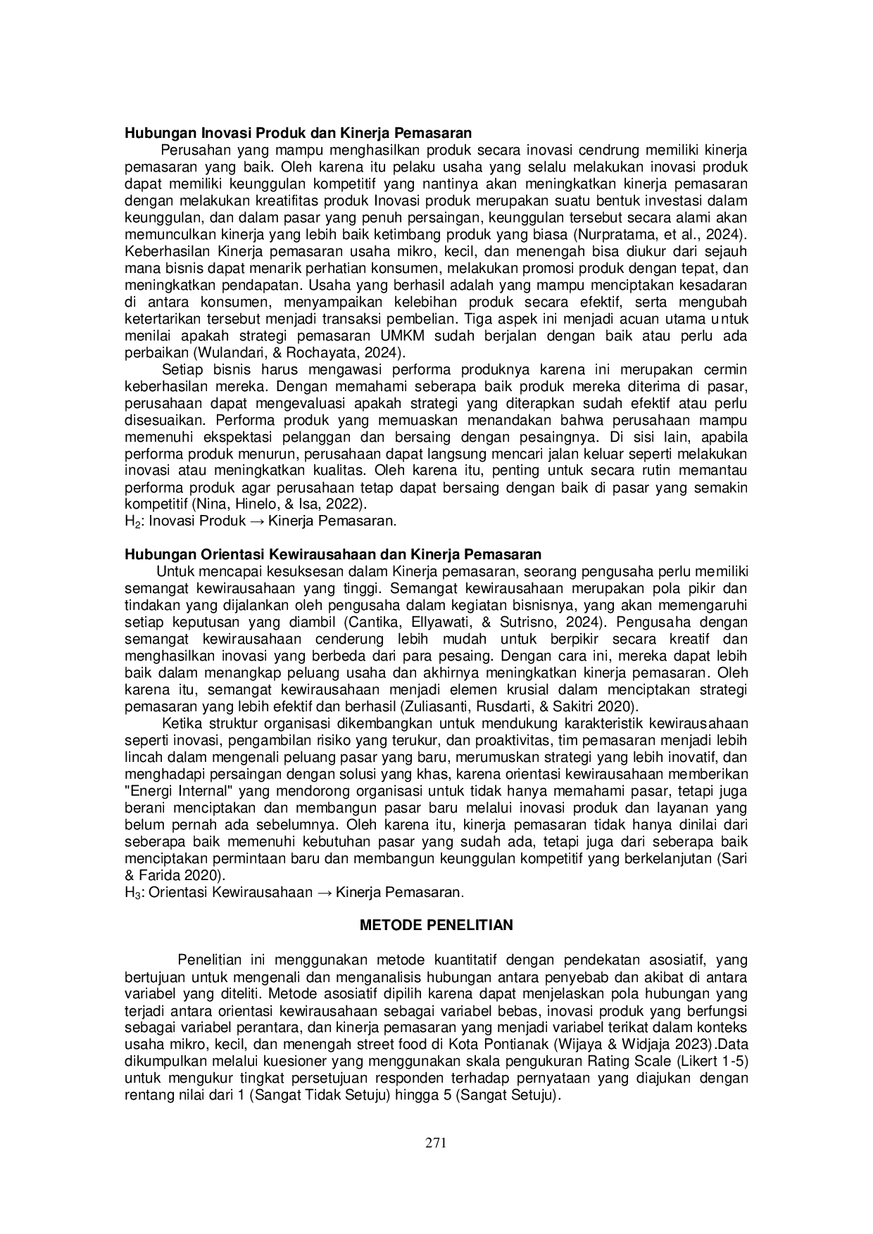 Orientasi kewirausahaan memiliki efek positif signifikan terhadap inovasi produk dan kinerja pemasaran UMKM street food.Inovasi produk berperan sebagai mediator parsial dalam hubungan ini.Kolaborasi orientasi kewirausahaan dan inovasi produk diperlukan untuk menciptakan keunggulan kompetitif di industri kuliner.