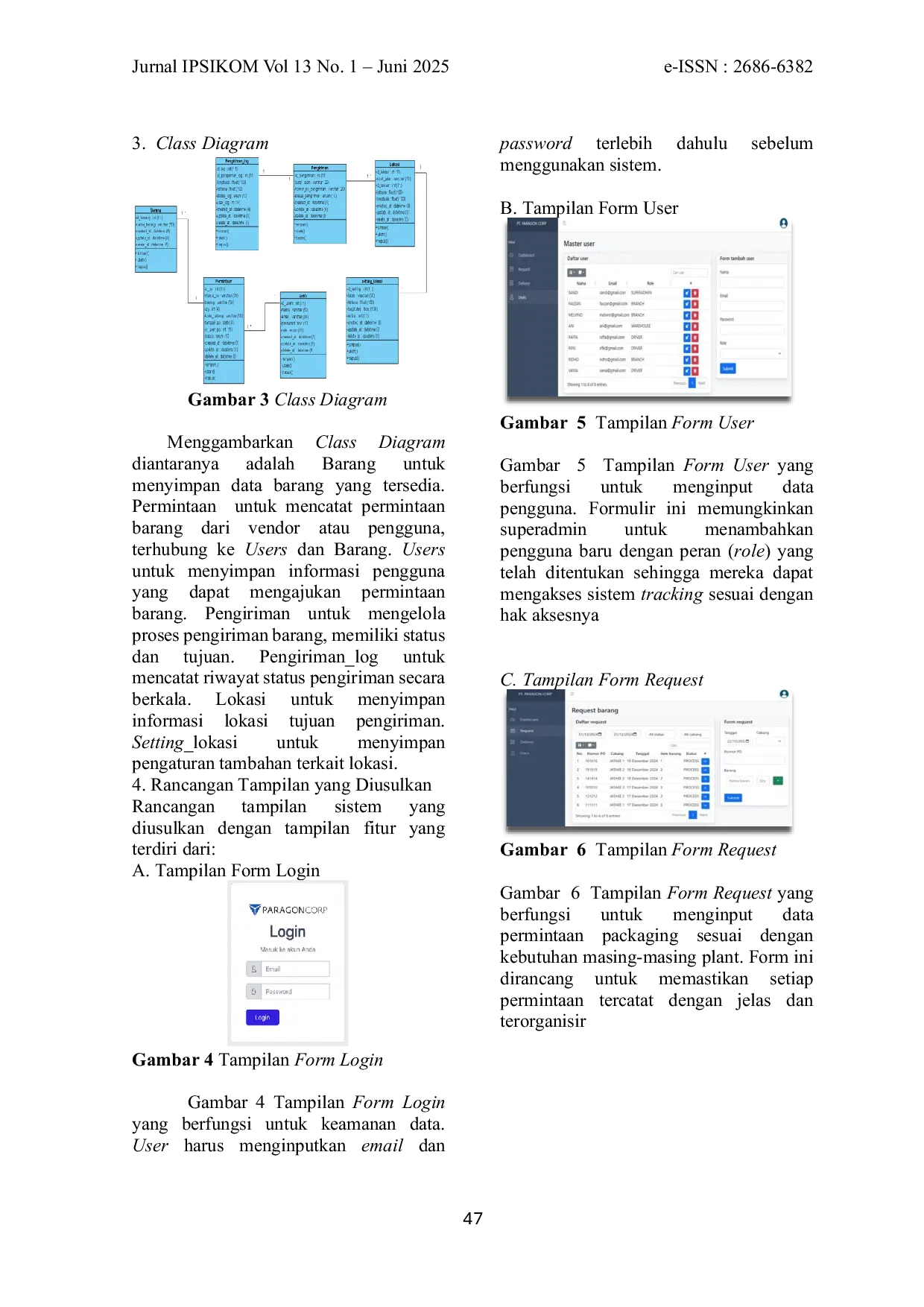 ipsikomipsikomEfisiensi distribusi merupakan tantangan penting dalam rantai pasok modern, terutama di sektor manufaktur. PT XYZ menghadapi kendala dalam penerapan sistem milk run untuk distribusi bahan kemasan, seperti kurangnya pengawasan real-time dan keterlambatan pengiriman. Hal ini berdampak pada kelancaran proses produksi dan peningkatan biaya operasional. Penelitian ini bertujuan untuk merancang sistem pelacakan berbasis website yang menggunakan teknologi GPS guna memantau pengiriman secara real-time. Sistem ini dirancang untuk memberikan visibilitas penuh terhadap proses distribusi, mengurangi kesalahan manusia, dan meningkatkan transparansi operasional. Metode pengembangan menggunakan pendekatan System Development Life Cycle (SDLC), meliputi analisis kebutuhan, desain, implementasi, dan pengujian dengan metode black box. Sistem ini dibuat dengan bahasa pemrograman PHP dan database MYSQL. Hasil penelitian menunjukkan bahwa sistem ini mampu meningkatkan efektivitas monitoring pengiriman, memberikan laporan otomatis, dan mempermudah pengelolaan data logistik secara digital. Dengan adanya sistem ini, proses distribusi menjadi lebih terorganisir, transparan, dan selaras dengan kebutuhan produksi.