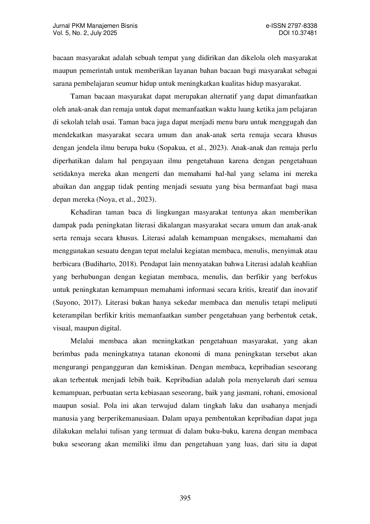 Jurnal PKM Manajemen BisnisJurnal PKM Manajemen BisnisKegiatan Pengabdian Masyarakat ini bertujuan untuk meningkatkan keterampilan literasi bagi anak-anak dan remaja di Desa Oetulu, Kecamatan Musi, Kabupaten Timor Tengah Utara. Kegiatan ini dilaksanakan dalam beberapa tahap, yaitu koordinasi dengan Pemerintah Desa Oetulu, survei dan penentuan lokasi taman baca, pengadaan buku dan fasilitas pendukung, penataan lokasi, operasi taman baca oleh tim pengabdian dan masyarakat, serta bantuan dalam pengelolaan taman baca. Hasil dari kegiatan ini adalah tersedianya taman baca bagi anak-anak dan remaja di Desa Oetulu.