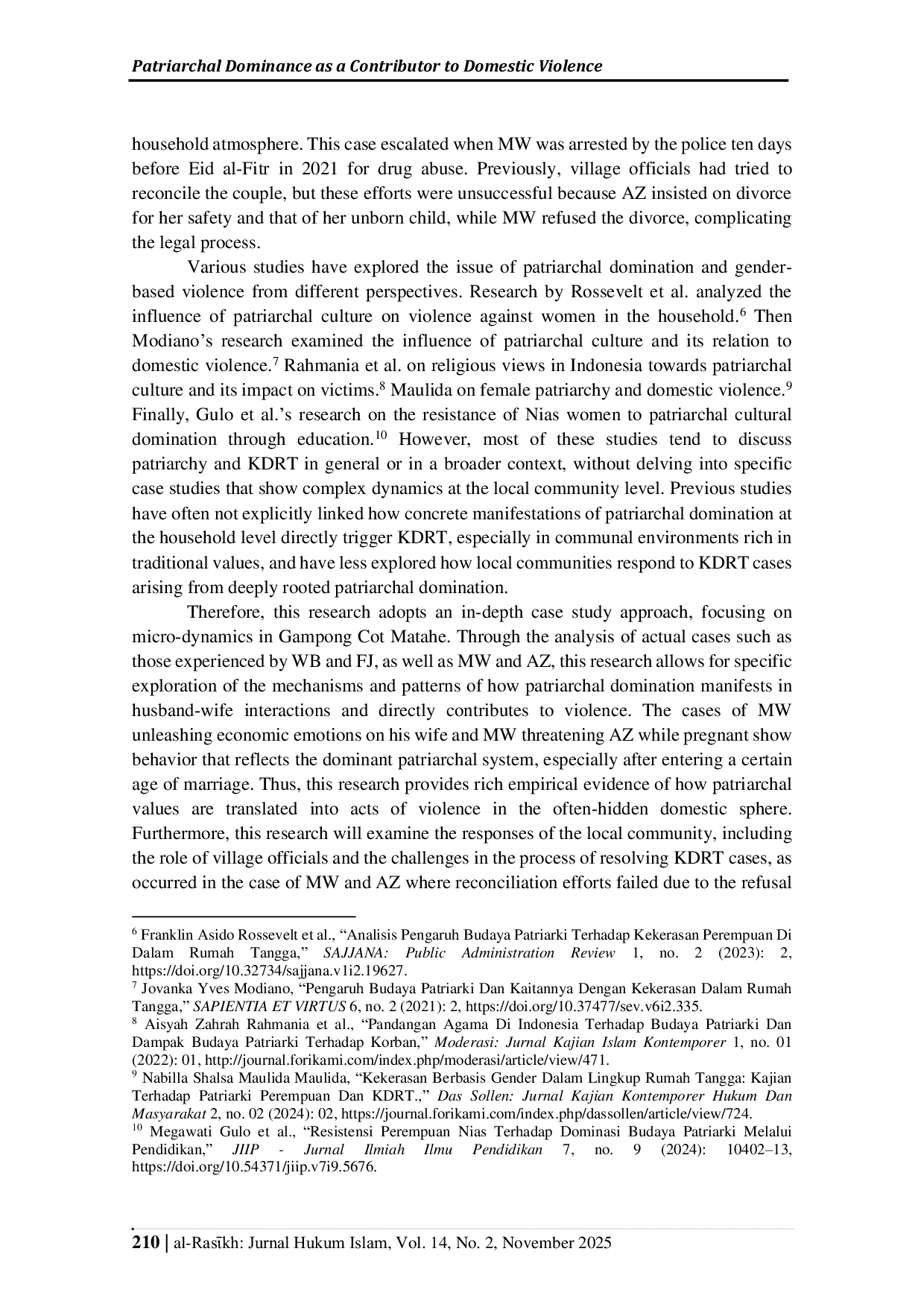 - Patriarchal Dominance as a Contributor to Domestic Violence | al-Rasῑkh: Jurnal Hukum Islam. patriarchal... doi.org/10.38073/rasikh.2995Patriarchal Dominance as a Contributor to Domestic Violence al Rasckh Jurnal Hukum Islam patriarchal doi 10 38073 rasikh 2995