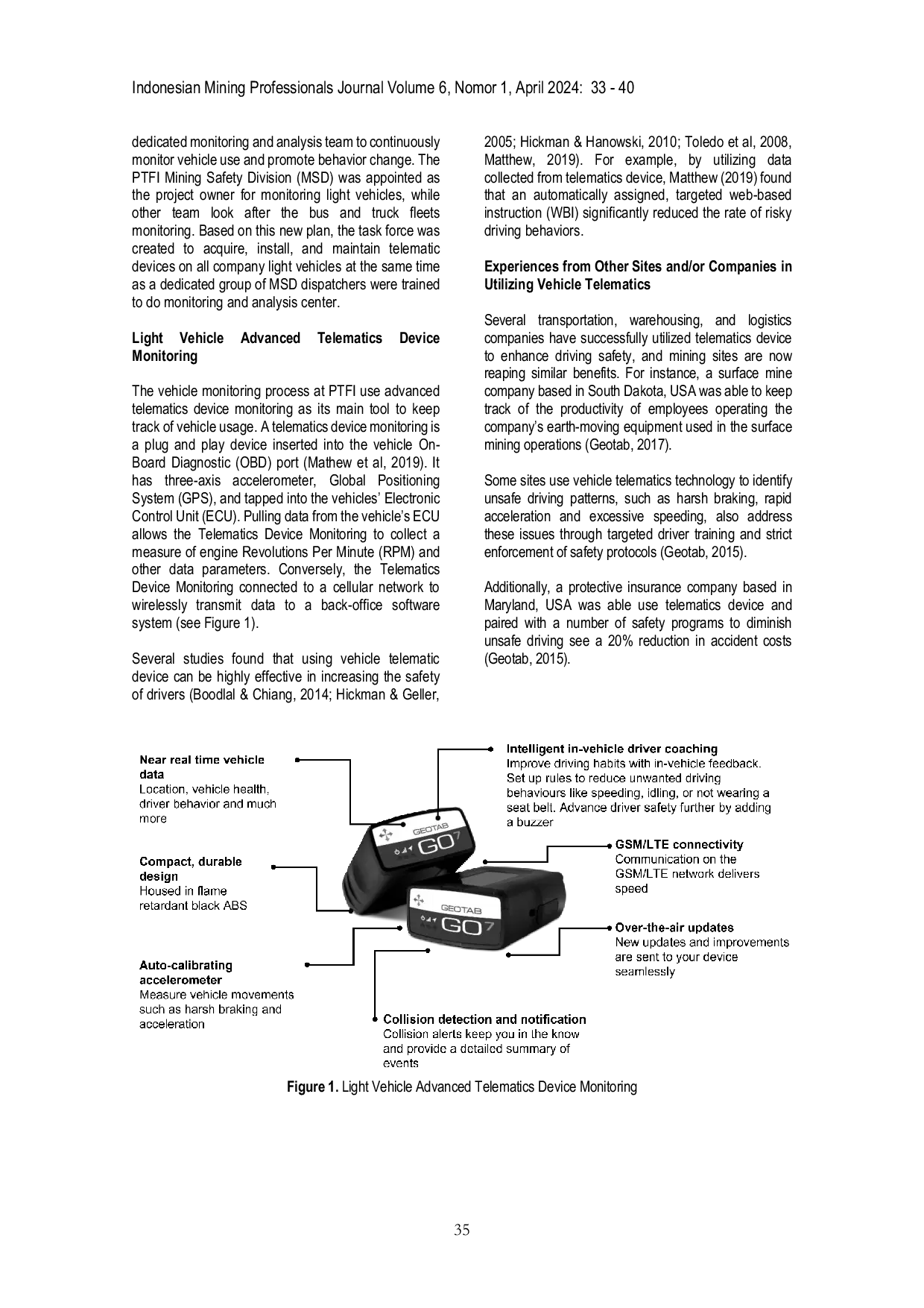 IMPJIMPJPT Freeport Indonesia (PTFI) adalah perusahaan pertambangan yang beroperasi di daerah terpencil Pegunungan Jayawijaya Papua, dan berjarak sekitar 3.500 km sebelah timur Jakarta, Indonesia. Cakupan area operasi penambangan yang terbentang dari dataran tinggi hingga dataran rendah berkaitan erat dengan kondisi jalan dan perubahan cuaca yang ekstrim. Selain tantangan alam tersebut, perilaku pengemudi kendaraan ringan yang tidak aman juga menjadi salah satu faktor penyumbang yang signifikan terhadap risiko terjadinya kecelakaan kendaraan ringan. Penerapan program teknologi pemantauan kendaraan ringan merupakan salah satu program keselamatan kerja di PTFI dengan tujuan untuk meningkatkan kesadaran berkendaraan sekaligus mendorong perubahan perilaku yang aman. Tulisan ini menjelaskan latar belakang, penerapan, tantangan yang dihadapi, hasil, dan potensi perbaikan di masa mendatang dari program ini untuk memastikan keselamatan pekerja di daerah operasi PTFI.