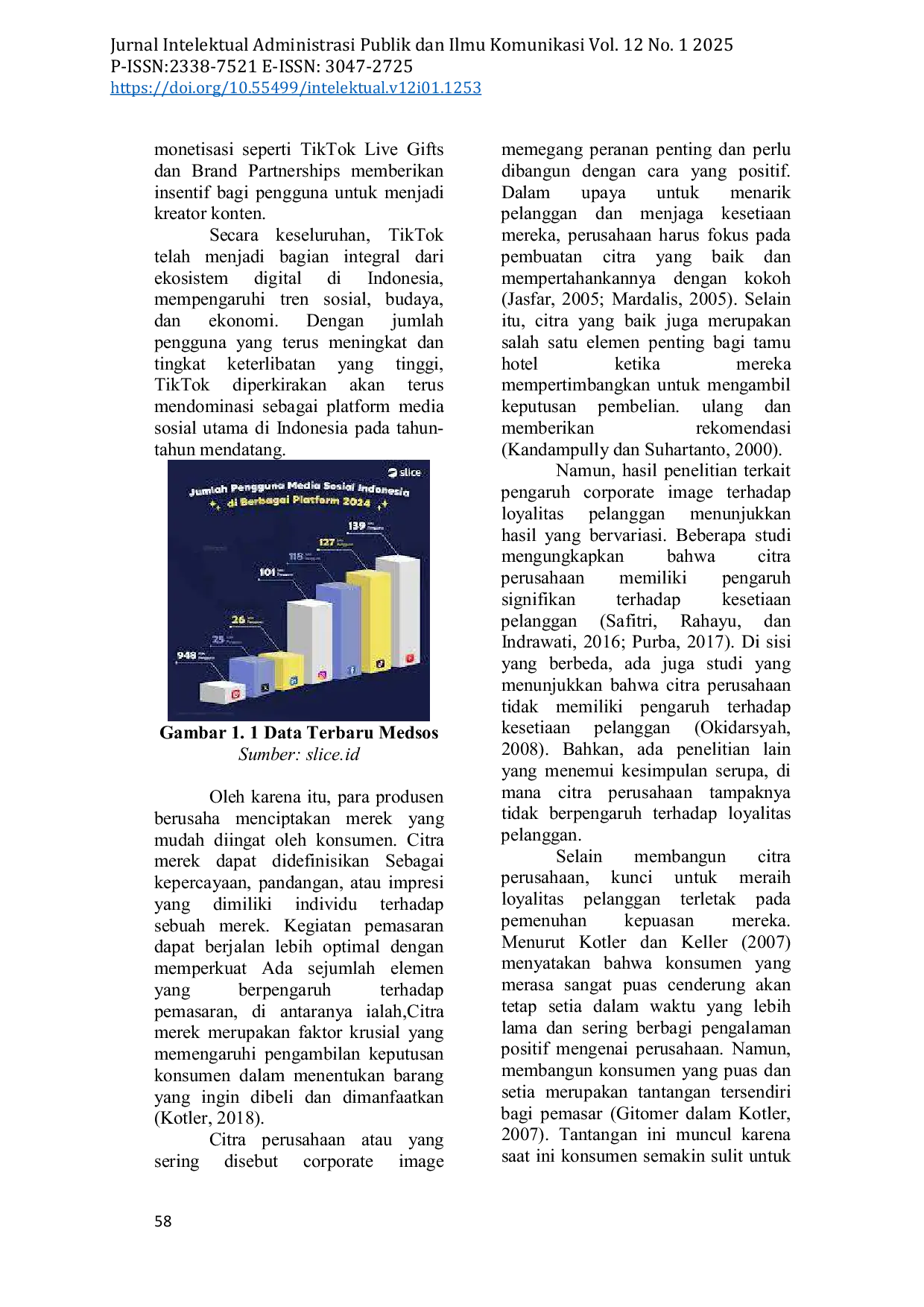Corporate image yang kuat di TikTok berdampak pada loyalitas pelanggan, terutama di kalangan generasi muda yang lebih aktif dan kritis terhadap citra merek di media sosial.Strategi corporate image yang diterapkan di TikTok secara signifikan memengaruhi kepuasan pelanggan, selain itu Perusahaan yang mampu menampilkan citra merek secara konsisten, kreatif, dan relevan di TikTok cenderung mendapat respons positif dari audiensnya.