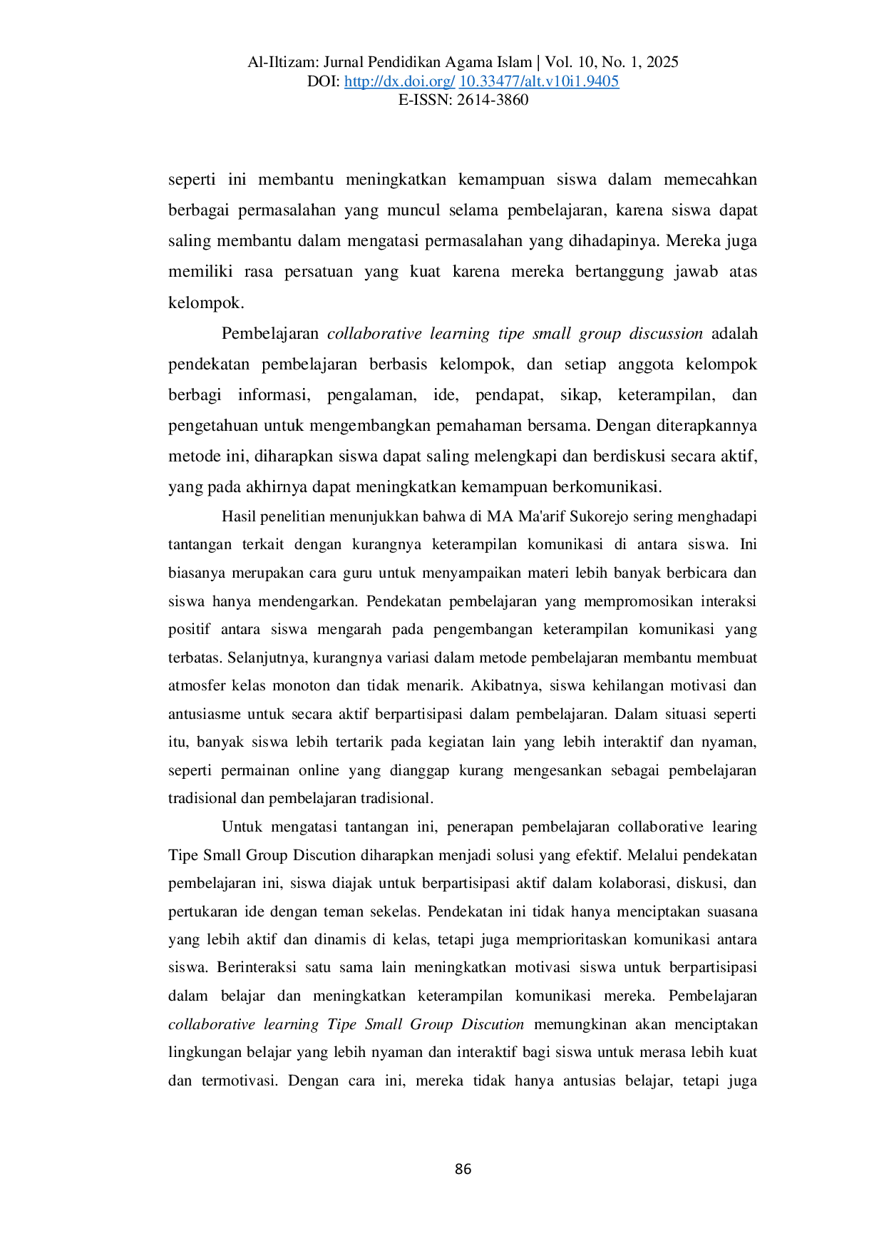 - COLLABORATIVE LEARNING INNOVATION OF SMALL GROUP DISCUSSION TYPE IN IMPROVING STUDENTS' COMMUNICATION... jurnal.iainambon.ac.id/index.php/ALT/article/view/9405COLLABORATIVE LEARNING INNOVATION OF SMALL GROUP DISCUSSION TYPE IN IMPROVING STUDENTS COMMUNICATION jurnal iainambon ac index php ALT article view 9405