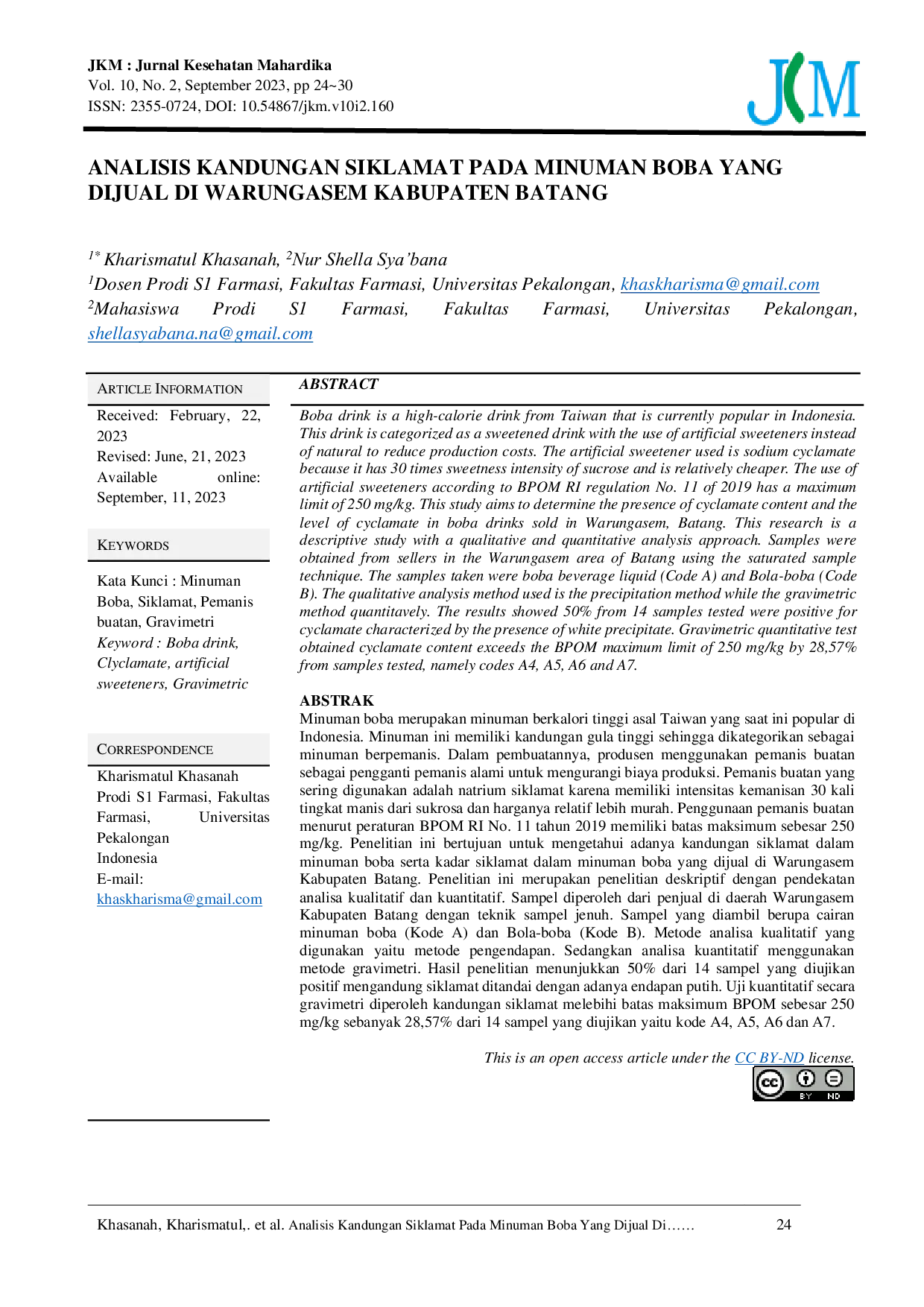 - Analysis of Cyclamate Content in Boba Drinks Sold in Warungasem, Batang Regency | Jurnal Kesehatan Mahardika.... doi.org/10.54867/jkm.v10i2.160Analysis of Cyclamate Content in Boba Drinks Sold in Warungasem Batang Regency Jurnal Kesehatan Mahardika doi 10 54867 jkm v10i2 160