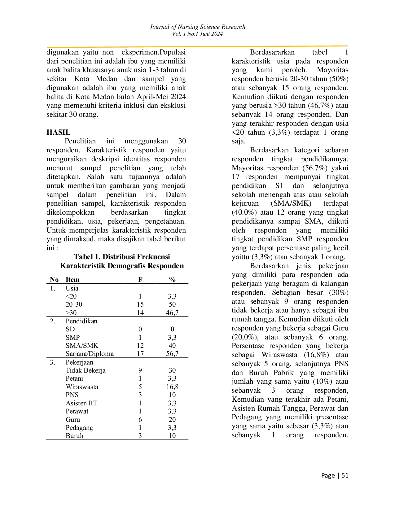 Journal Of Nursing Science ResearchJournal Of Nursing Science ResearchStunting merupakan salah satu masalah kesehatan utama yang menjadi fokus program pembangunan kesehatan pemerintah Indonesia periode 2015-2019, selain penurunan angka kematian ibu dan bayi, serta pengendalian penyakit menular dan tidak menular. Stunting adalah kondisi kurang gizi kronis yang dialami anak sejak dalam kandungan hingga awal masa pertumbuhan, mengakibatkan tinggi badan anak lebih rendah dari standar usianya. Tujuan penelitian ini adalah untuk mengetahui di kota medan. Desain penelitian menggunakan metode deskriptif dengan pendekatan cross sectional dengan jumlah sampel sebanyak 30 responden. Analisa dilakukan dengan meneybarkan kuisioner yang diberikan kepada ibu yang memiliki anak balita. Hasil penelitian ini menunjukan bahwa pengetahuan pencegahan stunting responden Baik yaitu 28 orang (93,3%), pengetahuan Kurang sebanyak (6,7%) atau sebanyak 2 orang responden, dan pada pengetahuan responden klasifikasi Cukup tidak ada (0%).