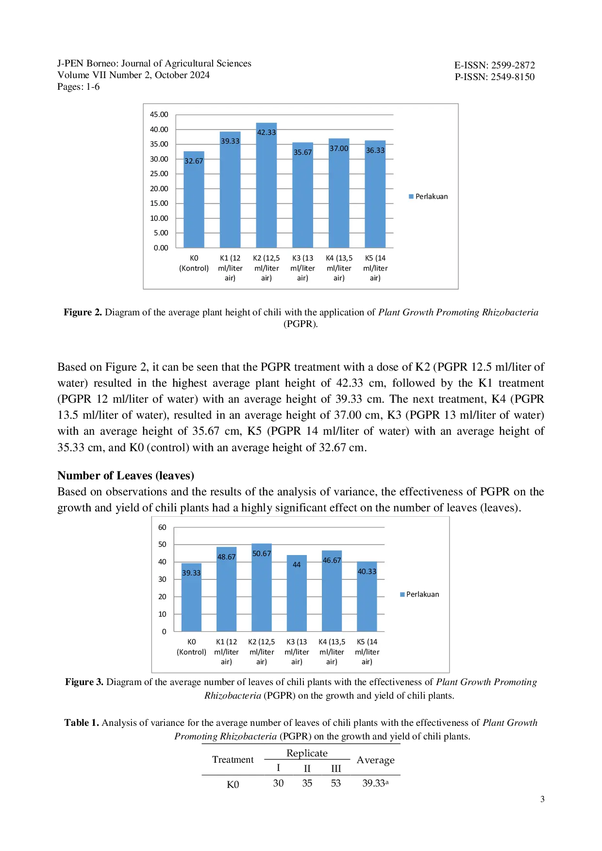 Aplikasi PGPR tidak berdampak signifikan pada tinggi tanaman cabai, tetapi berdampak signifikan pada jumlah daun.Konsentrasi PGPR K2 (12,5 ml/L) meningkatkan tinggi tanaman hingga 42,33 cm, sedangkan jumlah daun mencapai 50,67 daun tanpa perbedaan signifikan pada parameter tersebut.
