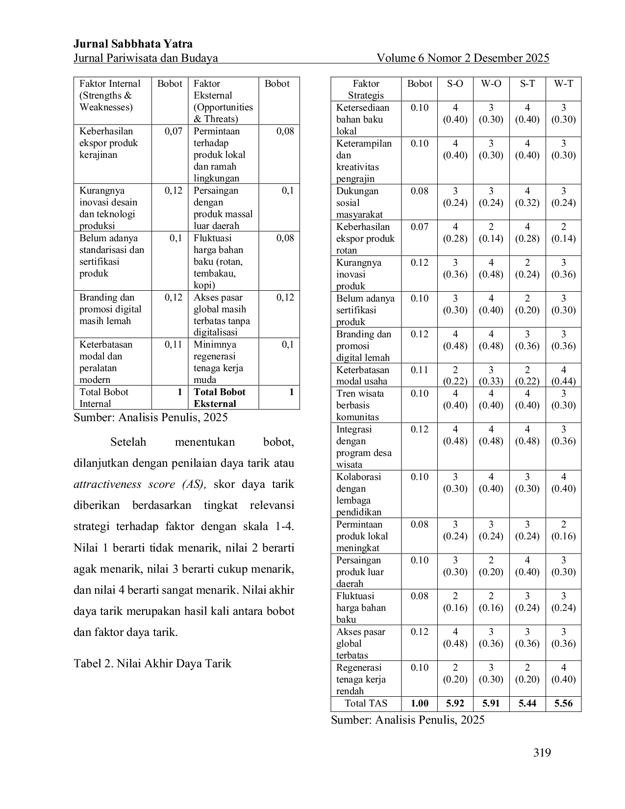 Pengembangan UMKM memiliki peran penting sebagai penggerak utama ekonomi lokal sekaligus penjaga nilai budaya dan identitas destinasi wisata.Namun, kondisi UMKM di Desa Seputih masih menghadapi banyak masalah dan tantangan.Permasalahan tersebut menghambat kontribusi UMKM terhadap penguatan daya saing desa wisata dan keberlanjutan ekonomi masyarakat.Oleh karena itu, diperlukan penelitian yang mengidentifikasi strategi yang tepat dalam mengembangkan UMKM untuk mendukung pengembangan pariwisata berkelanjutan di Desa Seputih.