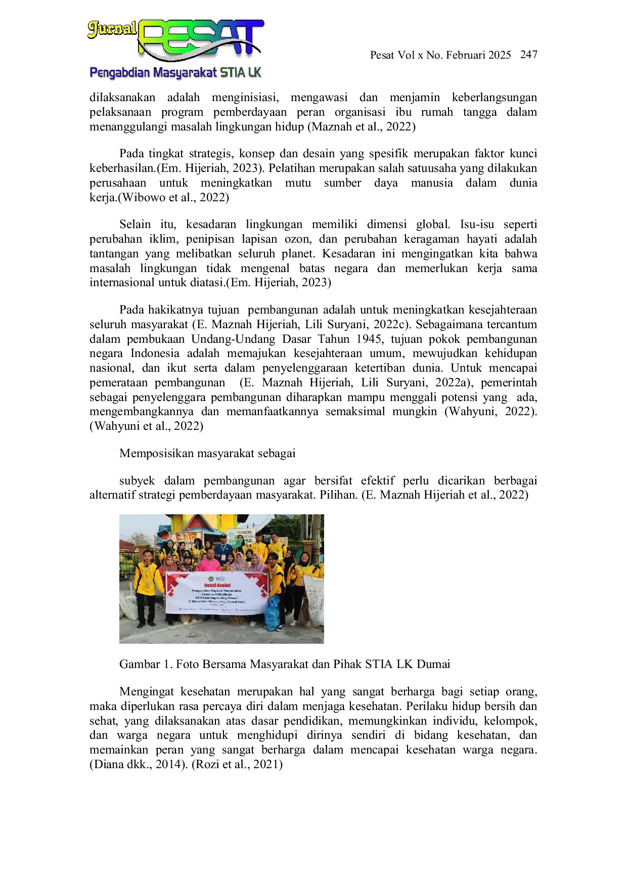 Jurnal Pengabdian Masyarakat STIA LK (PESAT)Jurnal Pengabdian Masyarakat STIA LK (PESAT)Kesadaran akan pentingnya kebersihan lingkungan merupakan salah satu aspek yang perlu ditanamkan sejak dini kepada masyarakat. Lembaga pendidikan memiliki peran yang sangat strategis dalam mengedukasi dan meningkatkan kesadaran masyarakat terhadap pentingnya kebersihan lingkungan. Dengan adanya program-program yang terstruktur dan berkelanjutan, diharapkan lembaga pendidikan dapat menjadi agen perubahan dalam menciptakan lingkungan yang lebih bersih dan sehat di kelurahan. Lembaga pendidikan, sebagai pusat pembelajaran dan pengembangan kepribadian, memainkan peran penting dalam menciptakan kesadaran tentang kebersihan lingkungan. Lembaga pendidikan dapat menanamkan nilai-nilai kebersihan dan lingkungan sejak usia dini melalui berbagai program dan kegiatan kepedulian pendidikan. Dengan berpartisipasi aktif dalam kampanye pembersihan lingkungan, lembaga pendidikan diharapkan dapat menumbuhkan generasi muda yang menghargai lingkungan dan bertanggung jawab. Daerah seringkali mempunyai berbagai masalah kebersihan yang memerlukan perhatian khusus. Permasalahan ini dapat diatasi dengan pendekatan yang melibatkan seluruh elemen masyarakat, termasuk lembaga pendidikan. Oleh karena itu, kerja sama antara lembaga pendidikan dan masyarakat setempat sangat penting untuk menciptakan lingkungan yang bersih dan sehat.