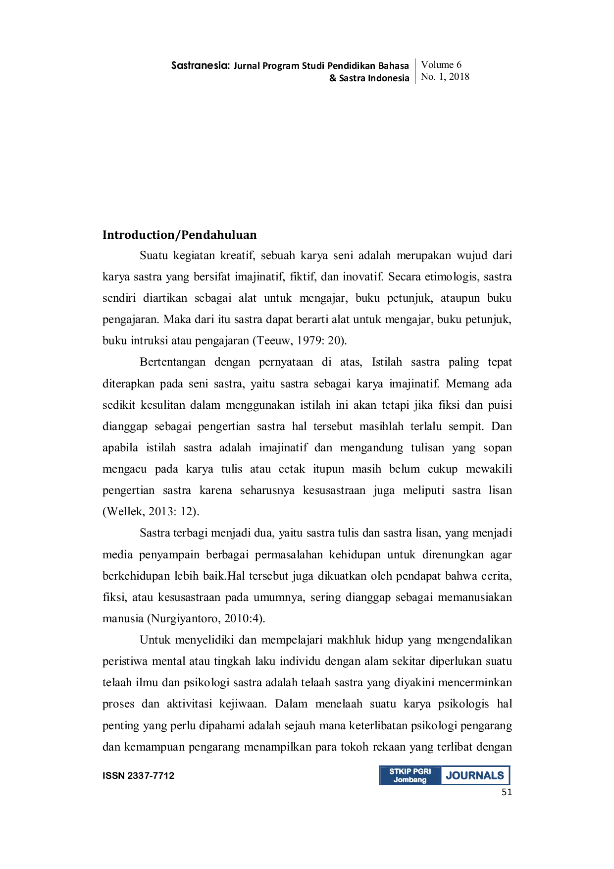 SASTRANESIA: Jurnal Program Studi Pendidikan Bahasa dan Sastra IndonesiaSASTRANESIA: Jurnal Program Studi Pendidikan Bahasa dan Sastra IndonesiaPenelitian ini bertujuan untuk mengetahui adanya struktur kepribadian tokoh utama Sandjojo yang terdapat dalam drama Penggali Intan karya Kirdjomuljo dengan menggunakan kajian psikologi sastra melalui teori kepribadian yang diterapkan oleh Ludwig Klages.
