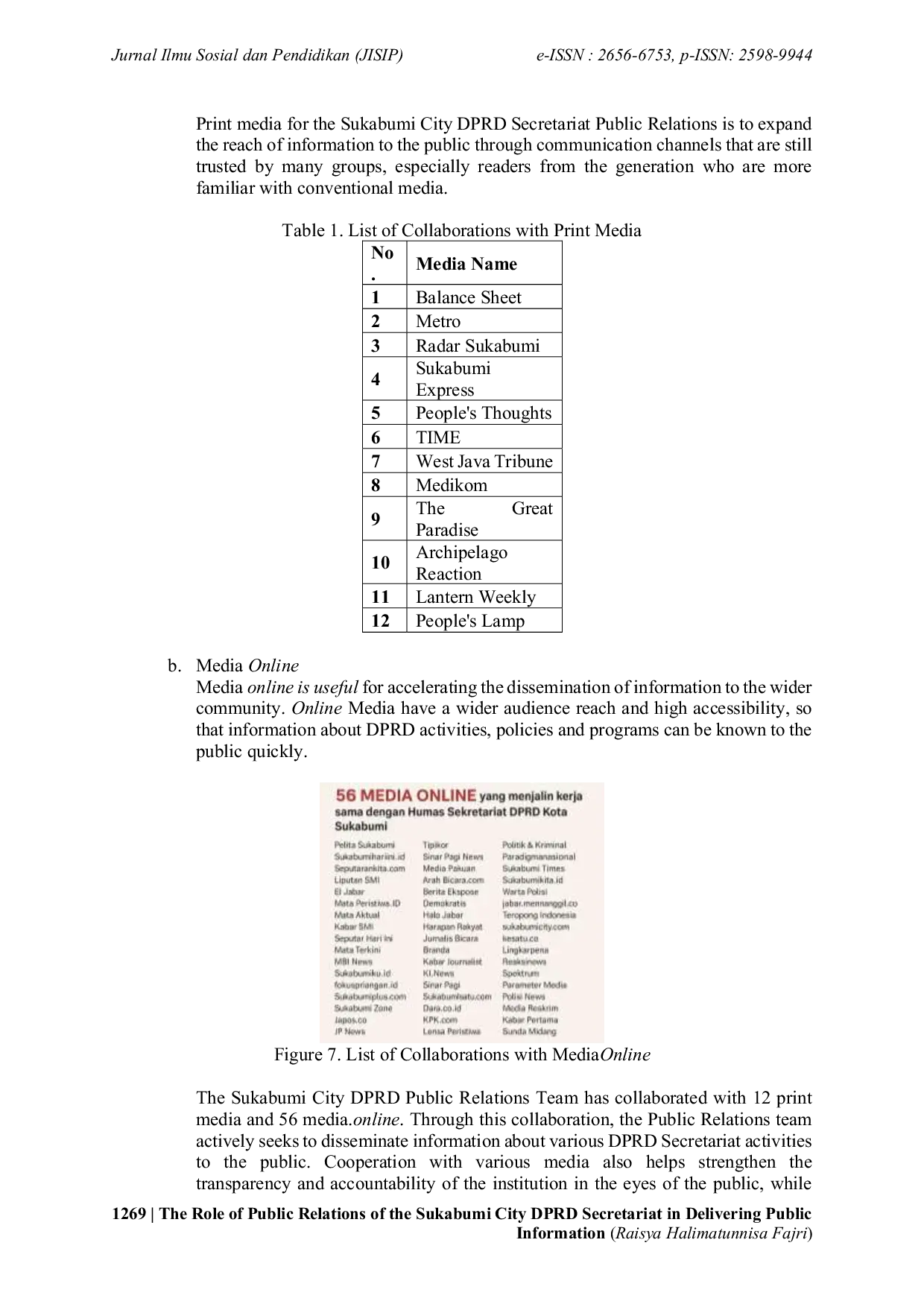 JISIP (Jurnal Ilmu Sosial dan Pendidikan)JISIP (Jurnal Ilmu Sosial dan Pendidikan)Hubungan masyarakat (HM) memegang peran strategis dalam menjembatani komunikasi antara lembaga pemerintahan dan masyarakat untuk mencapai transparansi informasi publik. Bagian Hubungan Masyarakat Sekretariat Dewan Perwakilan Rakyat Daerah (DPRD) Kota Sukabumi diharapkan dapat menyampaikan informasi secara transparan, akuntabel, dan efektif. Penelitian ini bertujuan untuk mengidentifikasi peran Bagian HM dalam menyampaikan informasi publik. Metode yang digunakan adalah deskriptif kualitatif dengan teknik pengumpulan data melalui observasi, wawancara, dan dokumentasi.