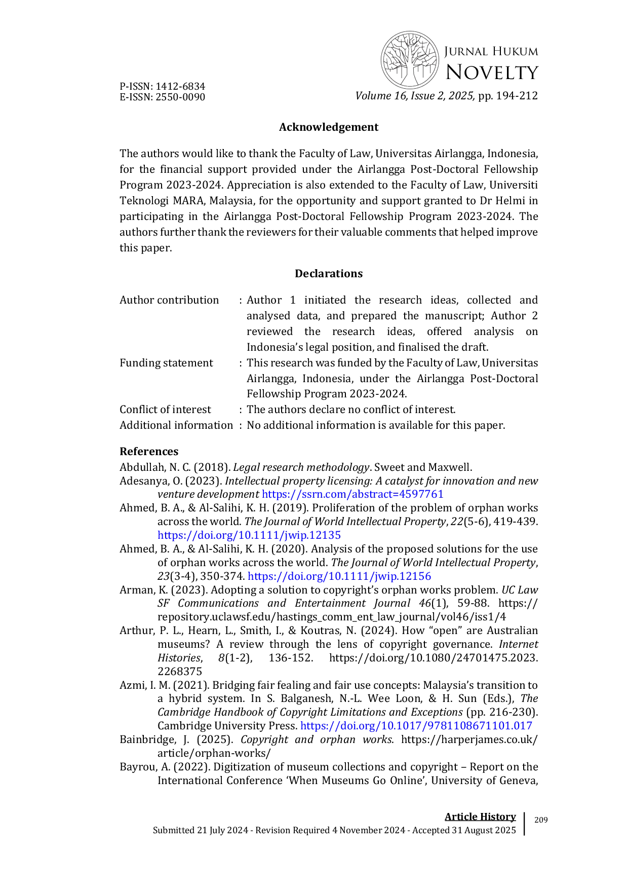 - Enhancing Access and Facilitating Use of Orphan Works: A Policy-Led Framework – International Journal... doi.org/10.47772/IJRISS.2024.806188Enhancing Access and Facilitating Use of Orphan Works A Policy Led Framework Ae International Journal doi 10 47772 IJRISS 2024 806188