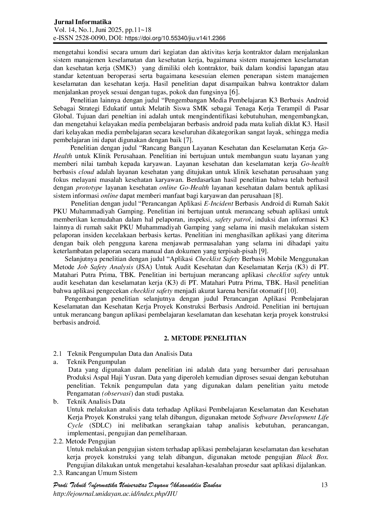 - Perancangan Aplikasi Pembelajaran Keselamatan dan Kesehatan Kerja Proyek Konstruksi Berbasis Android... ejournal.unidayan.ac.id/index.php/JIU/article/view/2366Perancangan Aplikasi Pembelajaran Keselamatan dan Kesehatan Kerja Proyek Konstruksi Berbasis Android ejournal unidayan ac index php JIU article view 2366