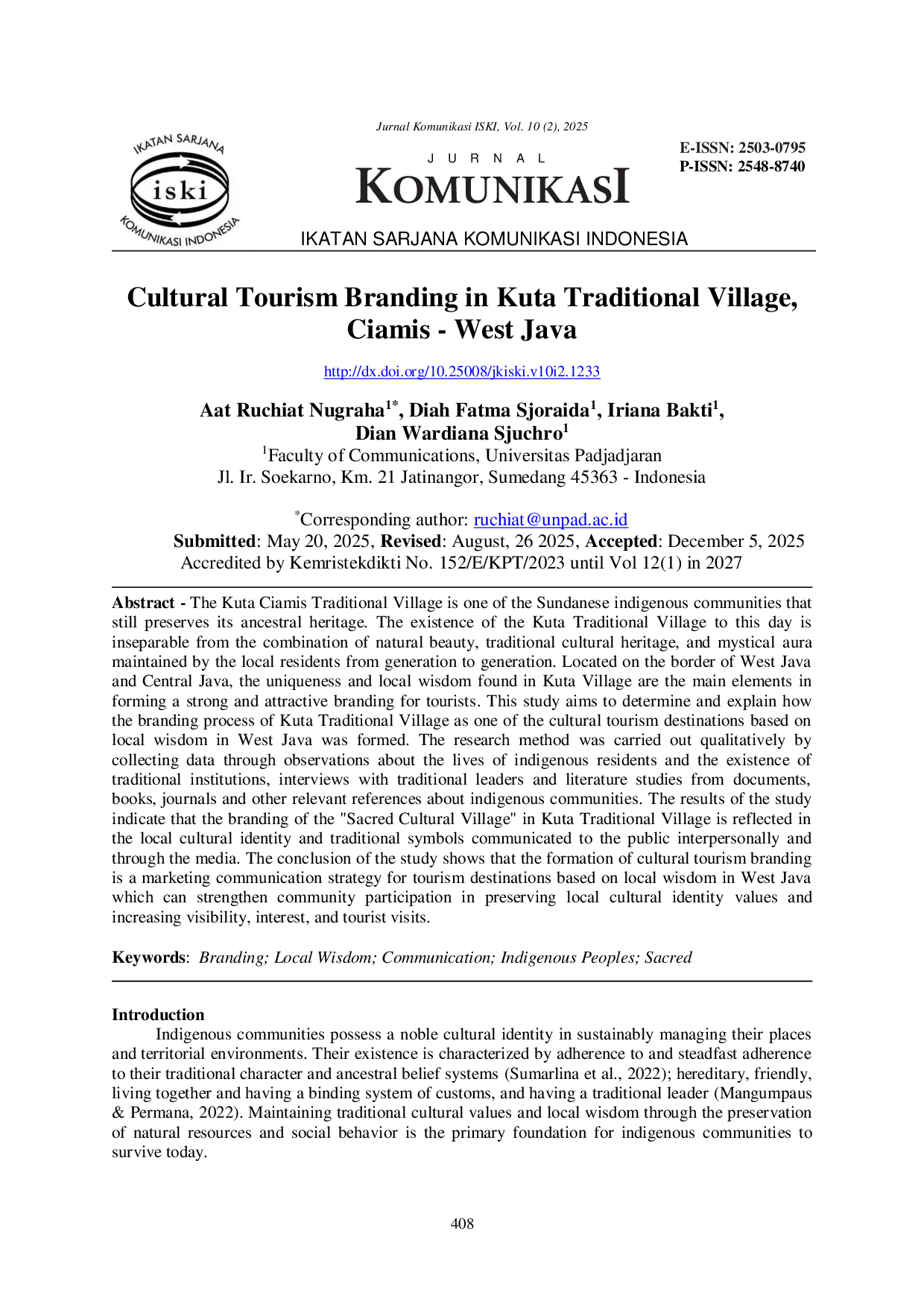 - Cultural Tourism Branding in Kuta Traditional Village, Ciamis - West Java | Jurnal Komunikasi Ikatan... jurnal-iski.or.id/index.php/jkiski/article/view/1233Cultural Tourism Branding in Kuta Traditional Village Ciamis West Java Jurnal Komunikasi Ikatan jurnal iski index php jkiski article view 1233