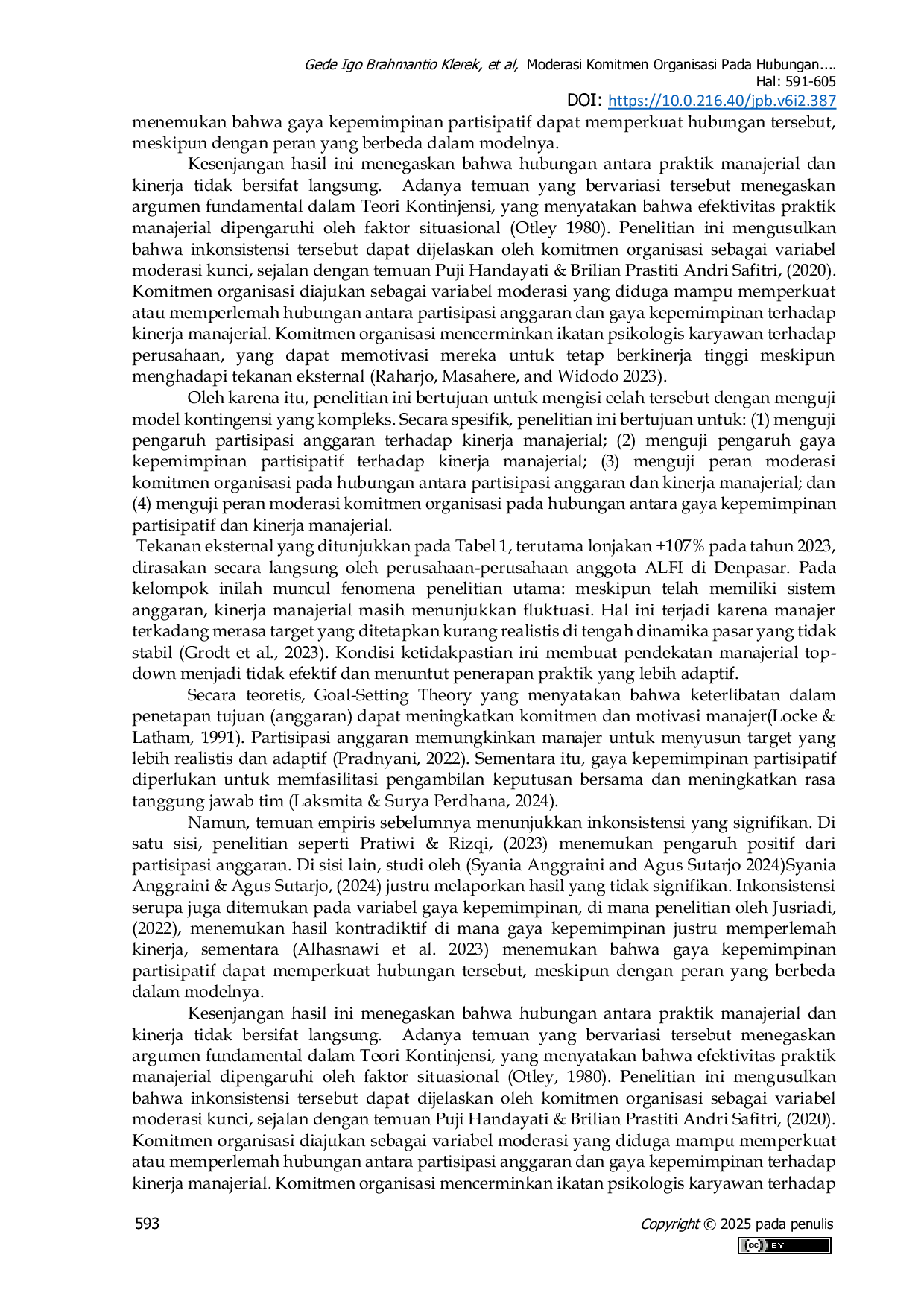 - PENGARUH PARTISIPASI DAN KOMITMEN ORGANISASI TERHADAP KINERJA MANAJERIAL: KOMITMEN ORGANISASI SEBAGAI... doi.org/10.29303/jaa.v4i2.55PENGARUH PARTISIPASI DAN KOMITMEN ORGANISASI TERHADAP KINERJA MANAJERIAL KOMITMEN ORGANISASI SEBAGAI doi 10 29303 jaa v4i2 55