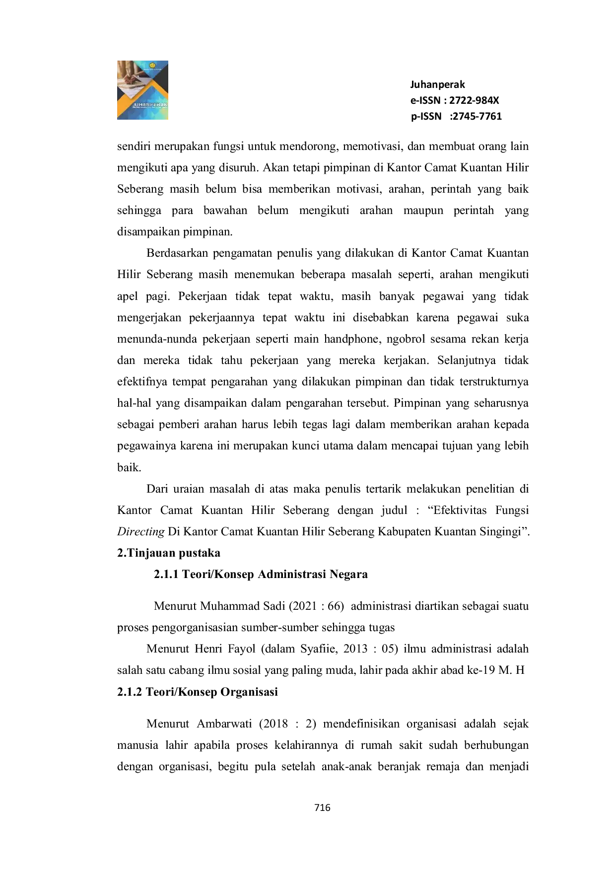 JUHANPERAKJUHANPERAKPenelitian ini dilaksanakan di Kantor Camat Kuantan Hilir Seberang Kabupaten Kuantan Singingi. Tujuan Penelitian ini adalah untuk mengetahui bagaimana . Hasil penelitian dapat disimpulkan bahwa belum efektif.