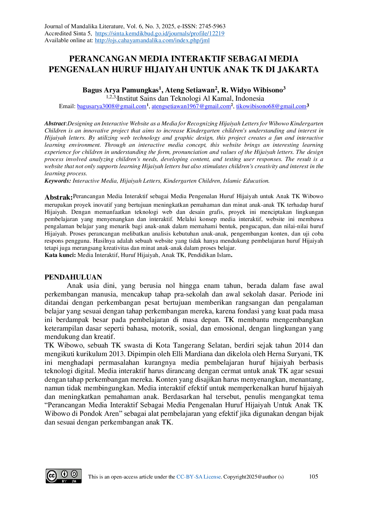 Media interaktif untuk pengenalan huruf hijaiyah di TK Wibowo terbukti efektif dalam meningkatkan partisipasi dan pemahaman anak.Fitur interaktif seperti animasi, video, dan permainan edukatif membuat belajar lebih menarik.Media ini mudah diakses di rumah, membantu anak-anak belajar meski dengan keterbatasan akses pendidikan formal.Selain itu, media ini mendukung peran guru dan orang tua dalam mengajarkan huruf hijaiyah dan berkontribusi dalam melestarikan nilai budaya serta agama Islam.