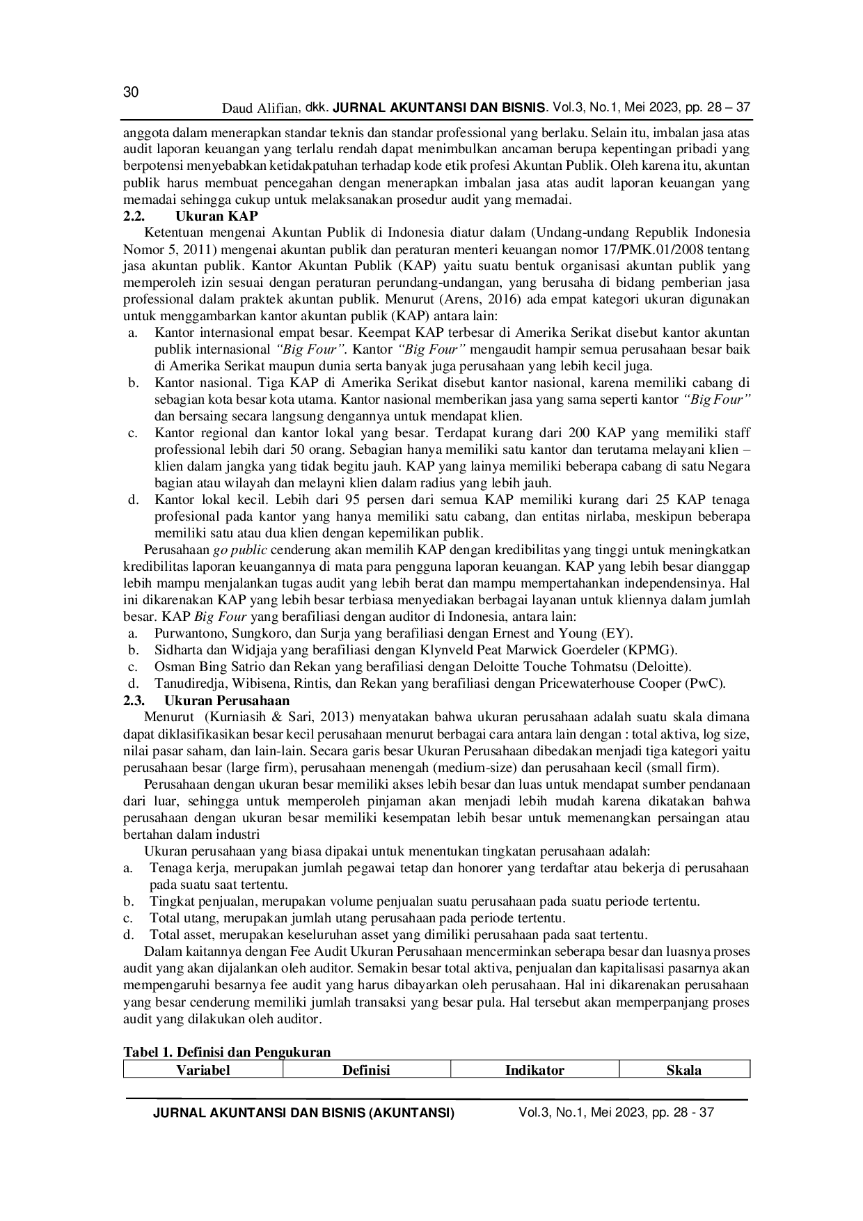 Ukuran klien berpengaruh positif dan signifikan terhadap fee audit pada perusahaan non‑keuangan yang terdaftar di Bursa Efek Indonesia tahun 2017‑2019, sehingga semakin besar total aset perusahaan, fee audit yang dibebankan juga semakin tinggi.Ukuran Kantor Akuntan Publik (KAP) tidak berpengaruh terhadap fee audit.Penggunaan KAP Big Four tidak menjamin fee audit lebih tinggi maupun sebaliknya.