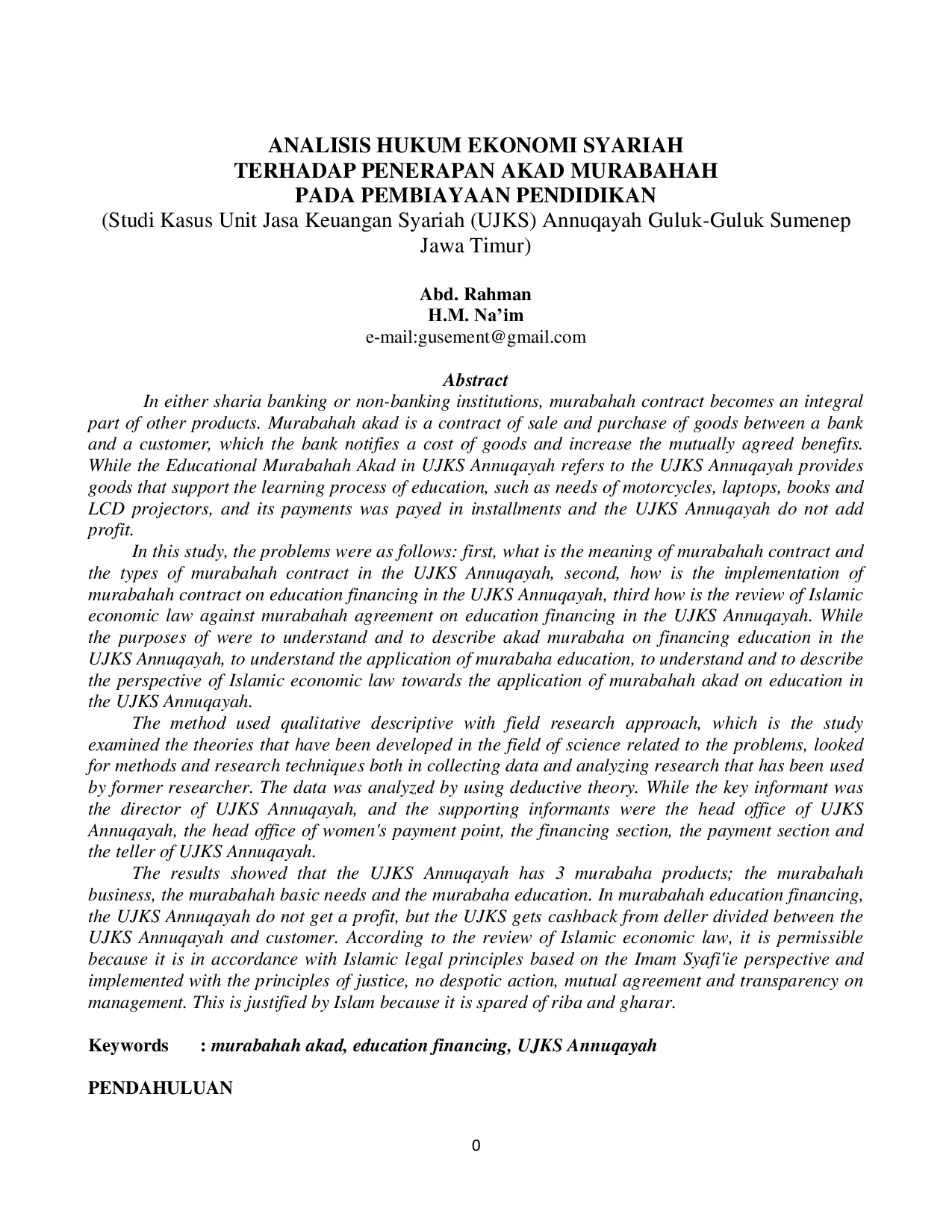STAINAASTAINAA Abstrak: Dalam penelitian ini adalah untuk mengimplementasikan hukum ekonomi syariah dalam pengelolaan keuamgan pesantren yang mana di harapkan akan dapatAbstrak: Dalam penelitian ini adalah untuk mengimplementasikan hukum ekonomi syariah dalam pengelolaan keuamgan pesantren yang mana di harapkan akan dapat