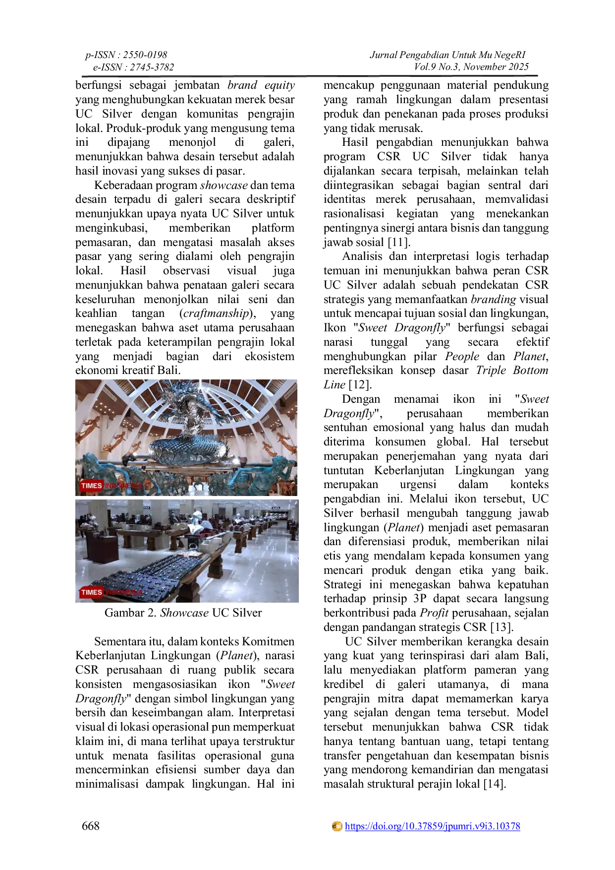 - Peran Corporate Social Responbility (CSR) UC Silver dalam Penguatan Ekonomi Kreatif dan Keberlanjutan... doi.org/10.37859/jpumri.v9i3.10378Peran Corporate Social Responbility CSR UC Silver dalam Penguatan Ekonomi Kreatif dan Keberlanjutan doi 10 37859 jpumri v9i3 10378