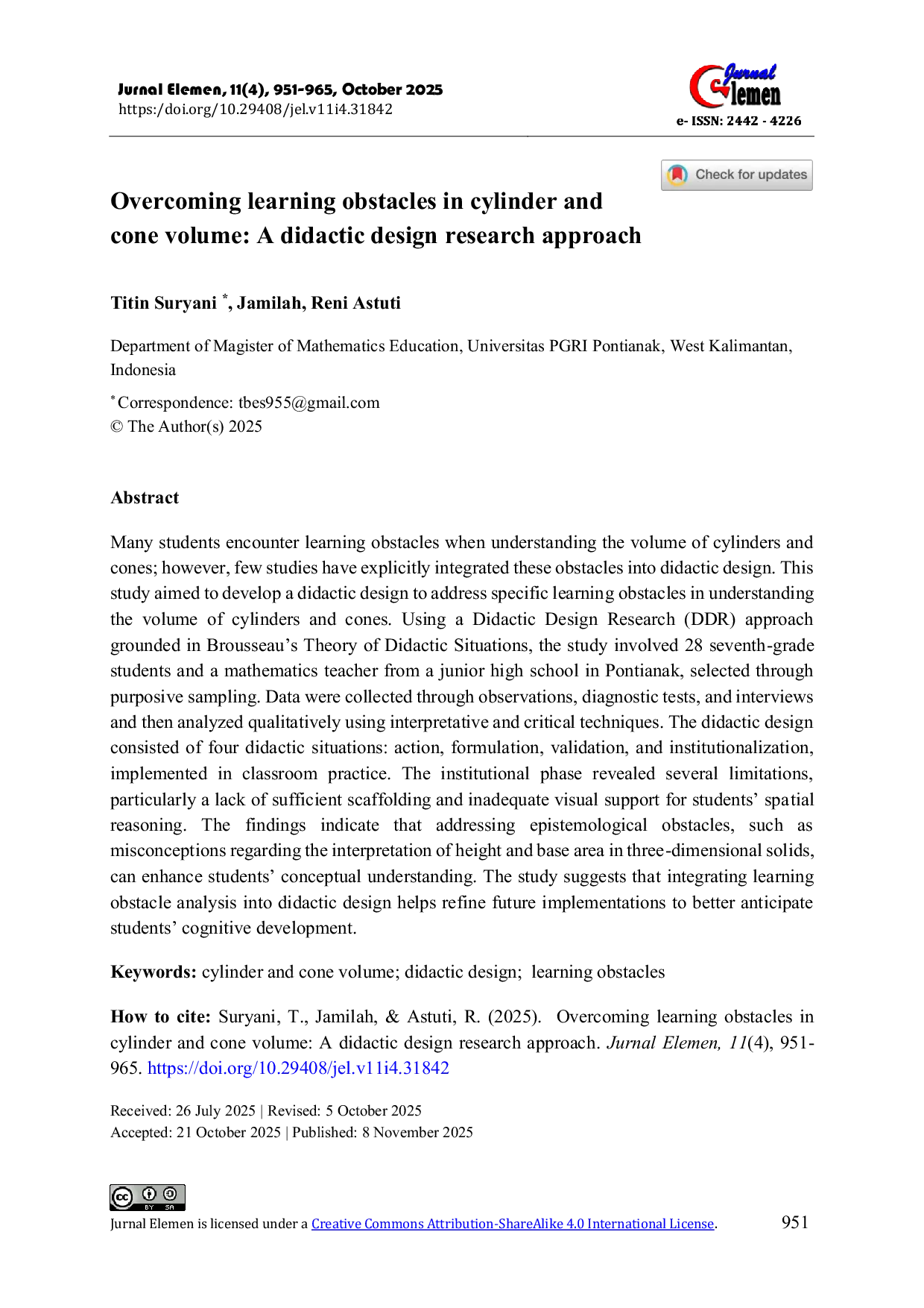 - Overcoming learning obstacles in cylinder and cone volume: A didactic design research approach | Jurnal... doi.org/10.29408/jel.v11i4.31842Overcoming learning obstacles in cylinder and cone volume A didactic design research approach Jurnal doi 10 29408 jel v11i4 31842