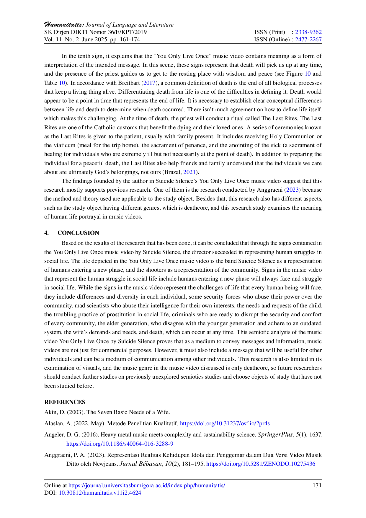 The analysis of Suicide Silences You Only Live Once music video reveals a successful representation of human struggles within society through its visual signs.These signs depict various challenges, including navigating new life phases, confronting societal differences, and grappling with issues like abuse of power, exploitation, and the complexities of human relationships.Ultimately, the music video serves not only as a marketing tool but also as a medium for conveying meaningful messages about the human condition.