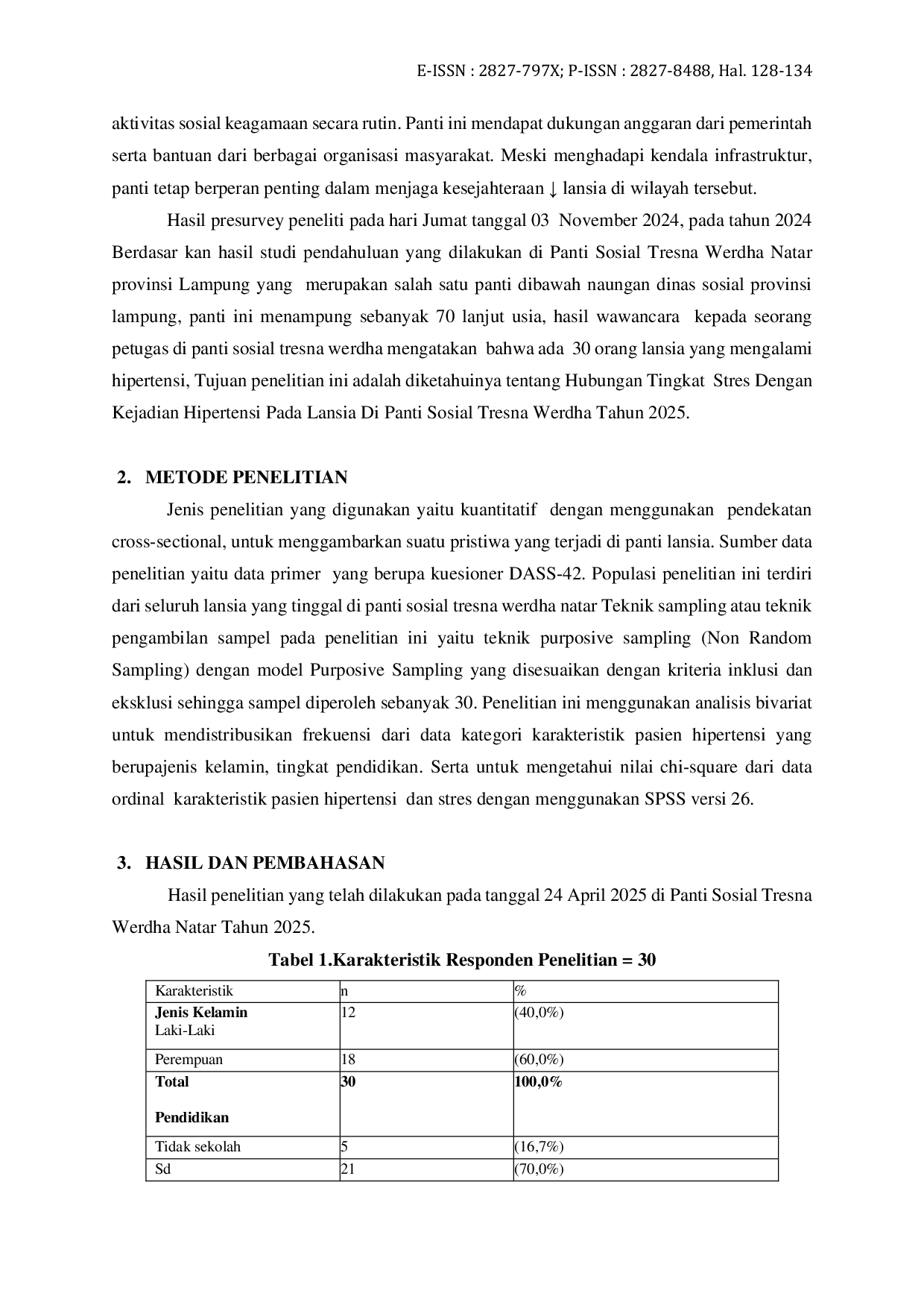 - Hubungan Tingkat Stres dengan Kejadian Hipertensi pada Lansia di Panti Sosial Tresna Werdha Natar | Jurnal... doi.org/10.55606/jikki.v5i3.7939Hubungan Tingkat Stres dengan Kejadian Hipertensi pada Lansia di Panti Sosial Tresna Werdha Natar Jurnal doi 10 55606 jikki v5i3 7939