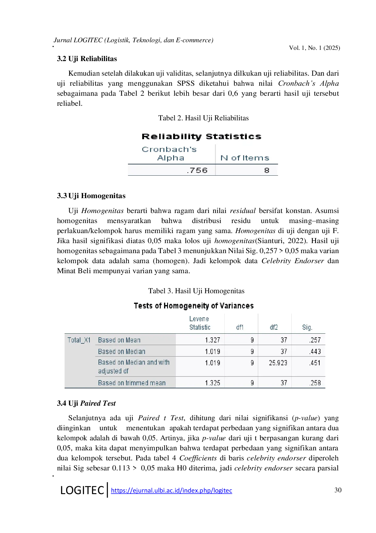 Jurnal LOGITECJurnal LOGITECPenelitian ini bertujuan untuk menganalisis pengaruh celebrity endorser terhadap peningkatan minat pembelian produk skincare dengan menggunakan studi kasus pada mahasiswa Universitas Logistik dan Bisnis Internasional (ULBI). Metode yang digunakan adalah survei dengan kuesioner sebagai instrumen pengumpulan data. Sampel penelitian adalah 100 responden yang dipilih secara acak dari populasi mahasiswa ULBI. Analisis data dilakukan dengan menggunakan regresi linier berganda. Hasil penelitian menunjukkan bahwa celebrity endorser memiliki pengaruh positif yang signifikan terhadap minat pembelian produk skincare di kalangan mahasiswa ULBI. Temuan ini diharapkan dapat menunjukkan bahwa strategi pemasaran dengan menggunakan celebrity endorser dapat efektif dalam meningkatkan minat pembelian produk skincare di kalangan mahasiswa.