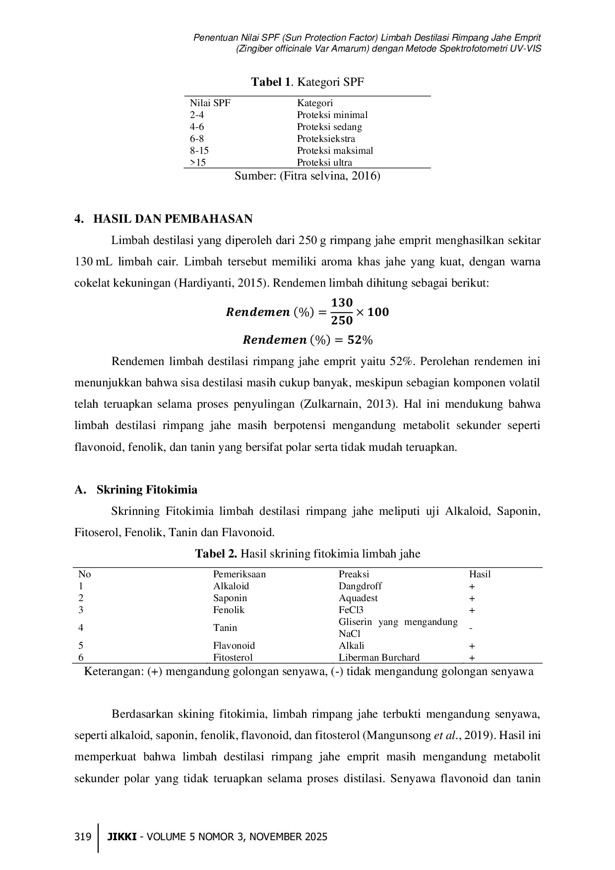 - Penentuan Nilai SPF (Sun Protection Factor) Limbah Destilasi Rimpang Jahe Emprit (Zingiber officinale... doi.org/10.55606/jikki.v5i3.8148Penentuan Nilai SPF Sun Protection Factor Limbah Destilasi Rimpang Jahe Emprit Zingiber officinale doi 10 55606 jikki v5i3 8148