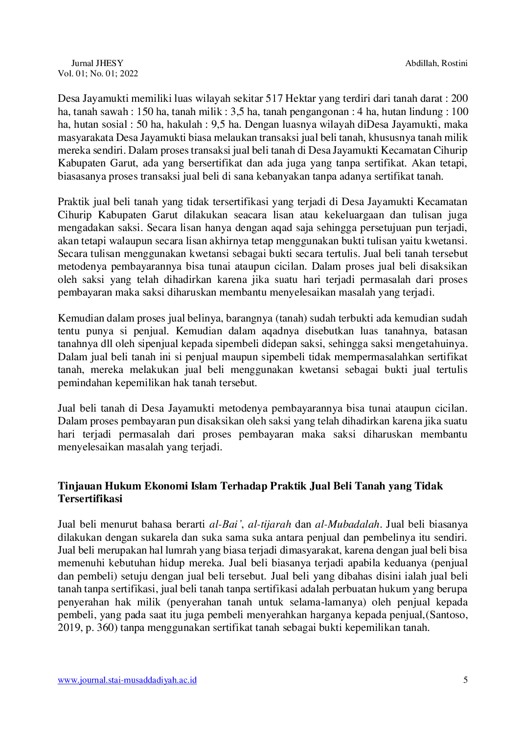 STAI MUSADDADIYAHSTAI MUSADDADIYAH Suatu jual beli dikatakan sah apabila memenuhi rukun dan syarat yang telah ditentukan. Akan tetapi, sampai saat ini masih banyak masyarakat di Desa JayamuktiSuatu jual beli dikatakan sah apabila memenuhi rukun dan syarat yang telah ditentukan. Akan tetapi, sampai saat ini masih banyak masyarakat di Desa Jayamukti