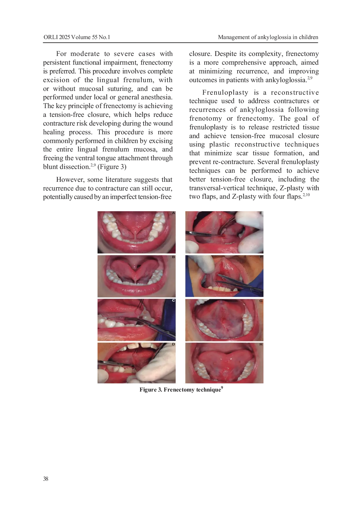 Oto Rhino Laryngologica IndonesianaOto Rhino Laryngologica IndonesianaAnkiloglosia, atau tongue-tie, adalah kelainan kongenital pada lidah yang ditandai dengan frenulum lingual yang pendek, tebal, atau kaku, sehingga membatasi pergerakan lidah. Meskipun kasus ringan tidak menunjukkan gejala, kondisi ini dapat berdampak pada berbagai aspek kehidupan seperti gangguan menyusu pada bayi, kesulitan menelan atau mengunyah, gangguan bicara, dan higiene rongga mulut. Pada anak, jika tidak ditangani sejak dini dapat menimbulkan gangguan psikososial, seperti rasa rendah diri, atau kesulitan berkomunikasi. Tujuan: Untuk memberikan pemahaman tentang ankiloglosia, mulai dari struktur dan fungsi lidah, tinjauan klinis, sistem klasifikasi, metode diagnosis, serta pilihan terapinya. Tinjauan pustaka: Dilakukan dengan merangkum literatur dari jurnal ilmiah dan buku akademik. Beberapa sistem klasifikasi seperti Coryllos dan Kotlow digunakan untuk menilai tingkat keparahan, dan menentukan keputusan klinis. Diagnosis umumnya berbasis pemeriksaan fisik dibantu alat standar seperti Hazelbaker Assessment Tool for Lingual Frenulum Function (HATLFF). Penatalaksanaan bervariasi, dari observasi pada kasus ringan, hingga tindakan pembedahan seperti frenotomi, frenektomi, atau frenuloplasti pada kasus yang mengganggu fungsi.
