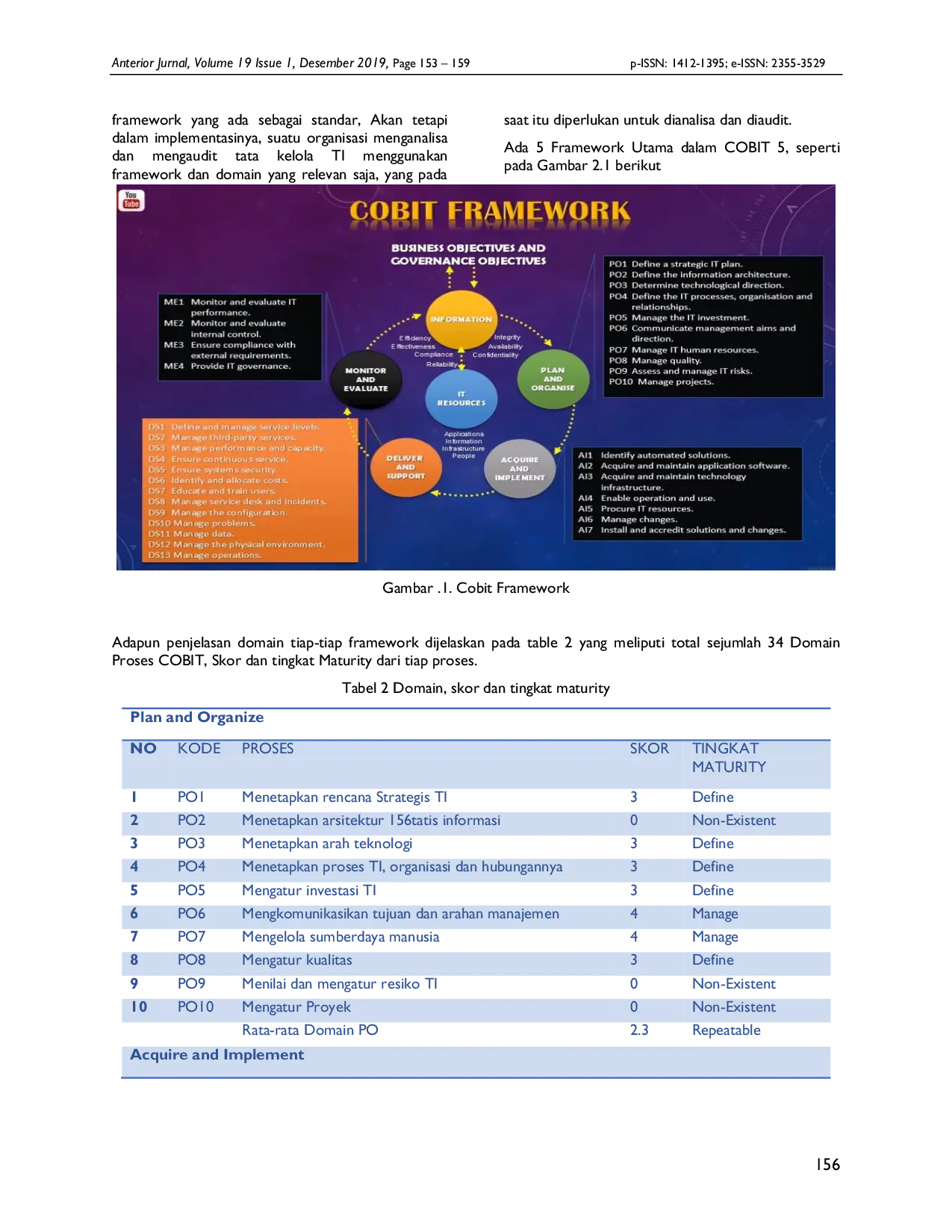 Anterior JurnalAnterior JurnalTata kelola teknologi informasi adalah bagian yang terintegrasi dari pengelolaan organisasi yang mencakup kepemimpinan, struktur serta proses organisasi yang memastikan bahwa teknologi dimanfaatkan seoptimal mungkin. Suatu institusi setara UMP terutama di bagian Biro Administrasi Umum (BAU), sudah saatnya dikelola dengan berbasis TI mengingat kompleksitas pekerjaan dan untuk efisiensi dan efektivitas kerja karyawan yang bekerja di BAU UMP. Tujuan penelitian ini adalah untuk mengetahui kondisi tata kelola TI di BAU UMP untuk saat ini dan menganalisa kebutuhan TI untuk 5-10 tahun yang akan datang dengan menerapkan metode COBIT 5 Framework. Berdasarkan data responden, untuk 5-10 tahun yang akan datang, BAU UMP Palangkaraya memerlukan paling tidak 6 orang staff dengan latar pendidikan IT atau Ilmu Komputer untuk masing-masing bagian sebanyak 1 orang staff. Untuk penelitian kelanjutannya adalah bekerja pada subdomain PO.08 dan PO 09.