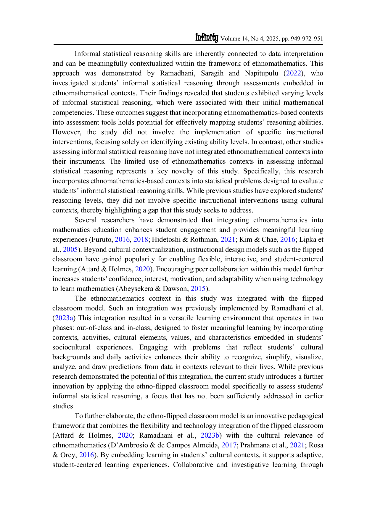 - Measuring Changes of Students’ Statistical Reasoning Taught by Ethnomathematics Approach Assisted... doi.org/10.31764/jtam.v6i3.8375Measuring Changes of StudentsAo Statistical Reasoning Taught by Ethnomathematics Approach Assisted doi 10 31764 jtam v6i3 8375