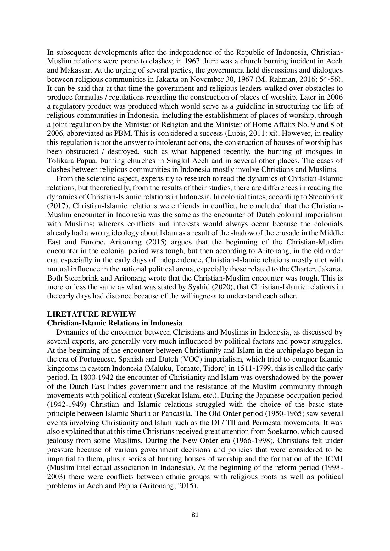 Berdasarkan penelitian ini, saran-saran penelitian lanjutan yang dapat diusulkan adalah: 1. Menganalisis lebih lanjut faktor-faktor yang mempengaruhi dinamika hubungan Kristen-Islam di Minahasa, khususnya dalam konteks perubahan sosial dan budaya. 2. Meneliti strategi-strategi yang dapat diterapkan untuk meningkatkan integrasi sosial antara komunitas Kristen dan Muslim di Minahasa, dengan mempertimbangkan budaya dan tradisi setempat. 3. Mengkaji peran pemimpin agama dan masyarakat dalam menciptakan harmoni dan toleransi antar umat beragama di Minahasa, serta bagaimana mereka dapat menjadi agen perubahan positif dalam masyarakat.