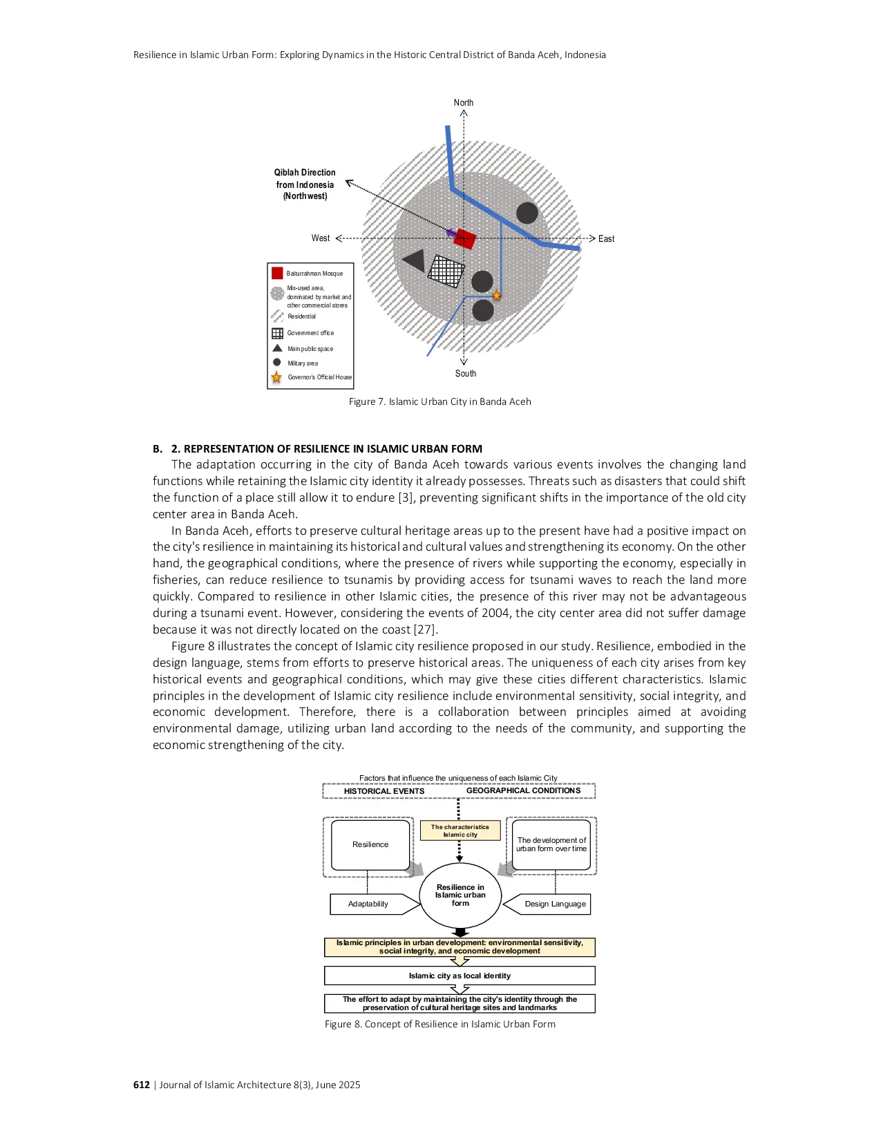 Banda Aceh merupakan kota Islam yang menunjukkan karakteristik unik dalam tata ruang dan fungsi sosial.Area historis yang tetap terjaga mencerminkan ketahanan terhadap bencana, seperti gempa dan tsunami.Faktor budaya dan geografis berkontribusi pada ketahanan kota.Perlu penelitian lebih lanjut untuk memahami dinamika adaptasi dan peran elemen lokal dalam perencanaan kota berkelanjutan.
