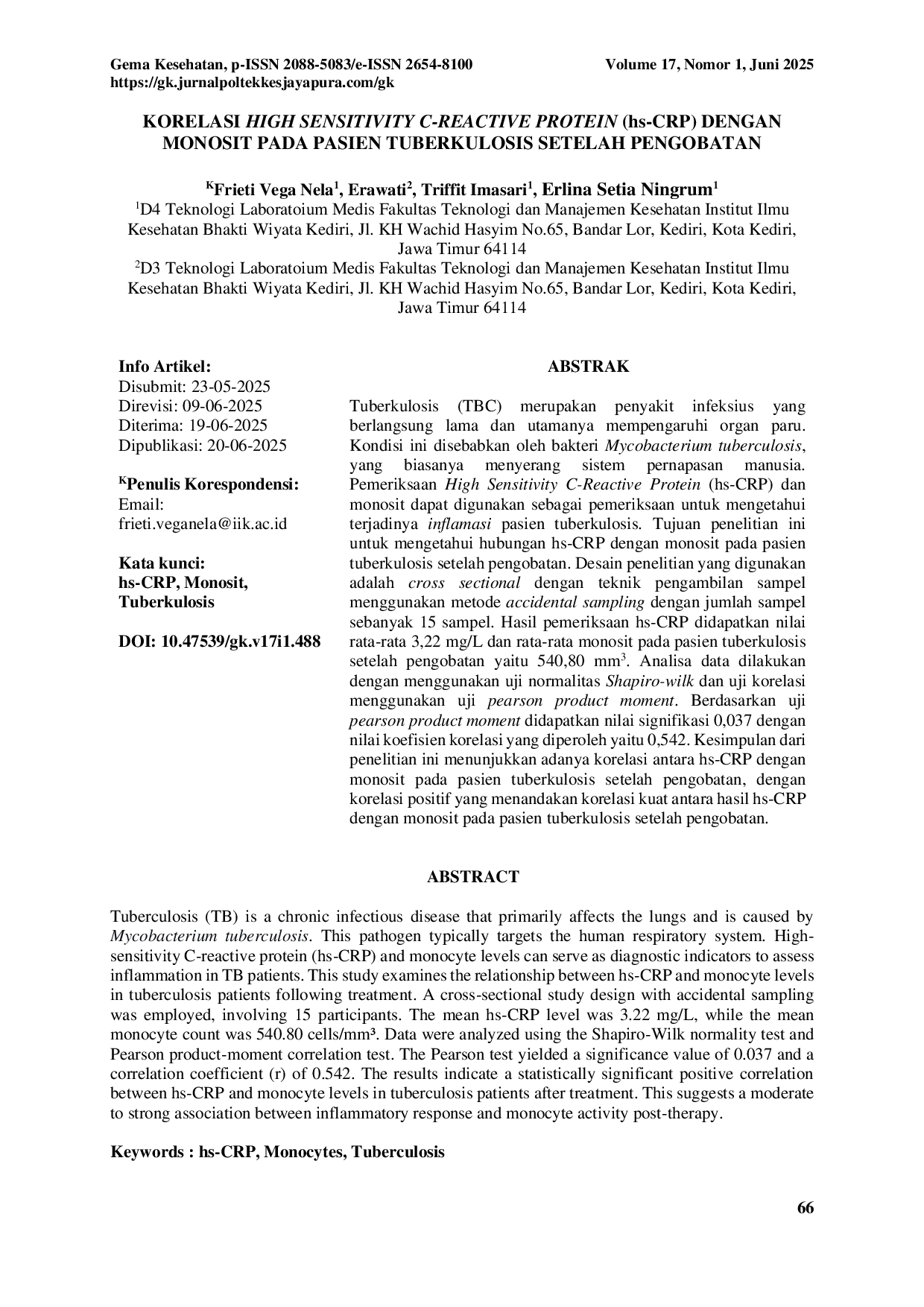 - gema kesehatan. korelasi high sensitivity reactive protein hs crp monosit pasien tuberkulosis pengobatan... gk.jurnalpoltekkesjayapura.com/gk/article/view/488gema kesehatan korelasi high sensitivity reactive protein hs crp monosit pasien tuberkulosis pengobatan gk jurnalpoltekkesjayapura gk article view 488